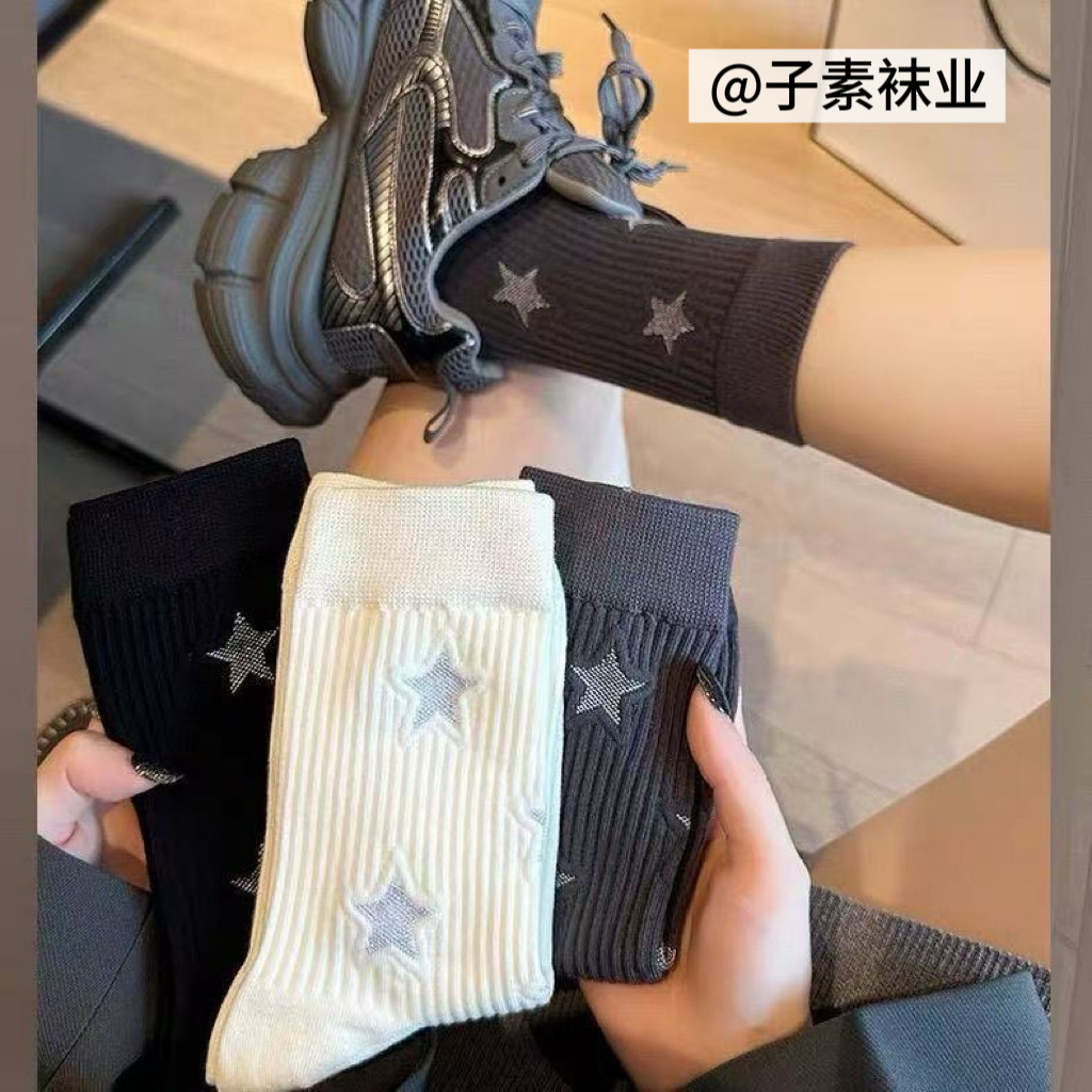 袜子女新款中筒袜五角星个性百搭ins韩版潮流女袜长筒袜