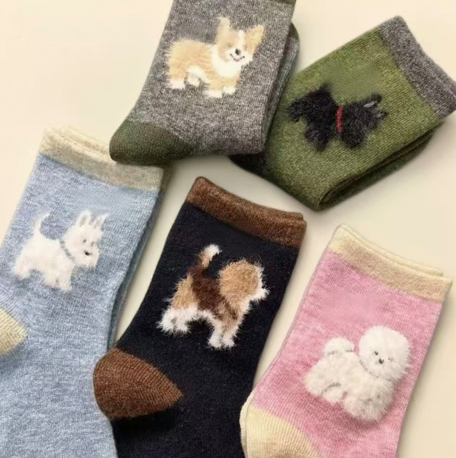 小狗羽毛纱袜子女中筒袜秋冬款韩版ins潮日系卡通加厚可爱长筒袜
