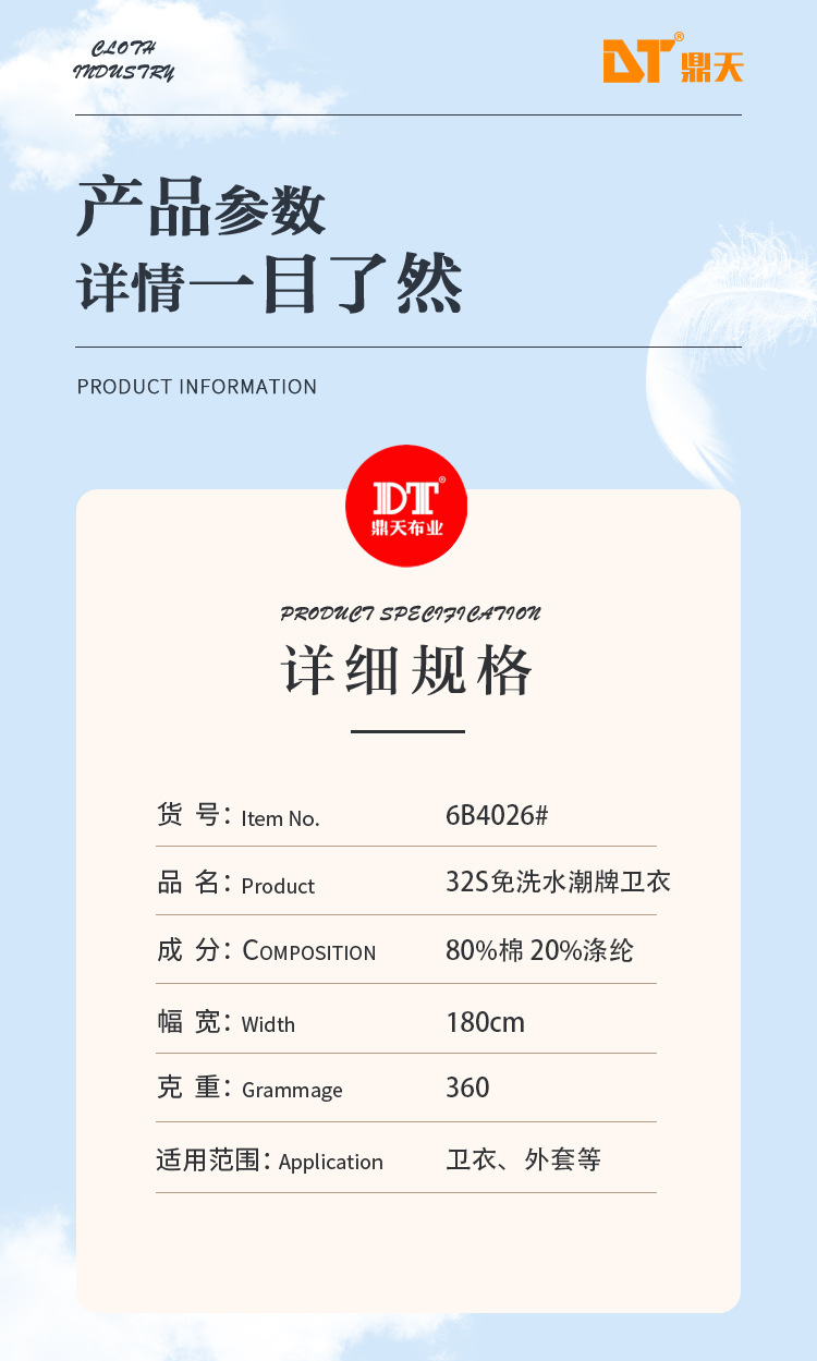鼎天衛衣メリヤス生地26s無水洗い潮牌衛衣生地潮牌女装男装生地