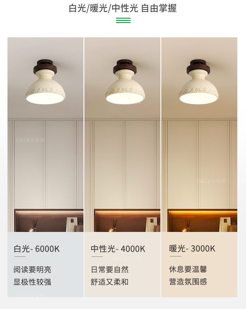 大観園廊下灯通路灯中世わびさびスタイル玄関寝室クローククリエイティブクルミシーリングランプ L271