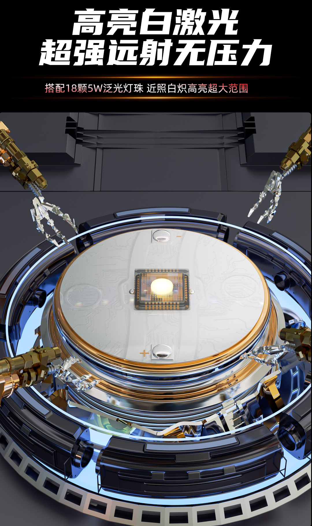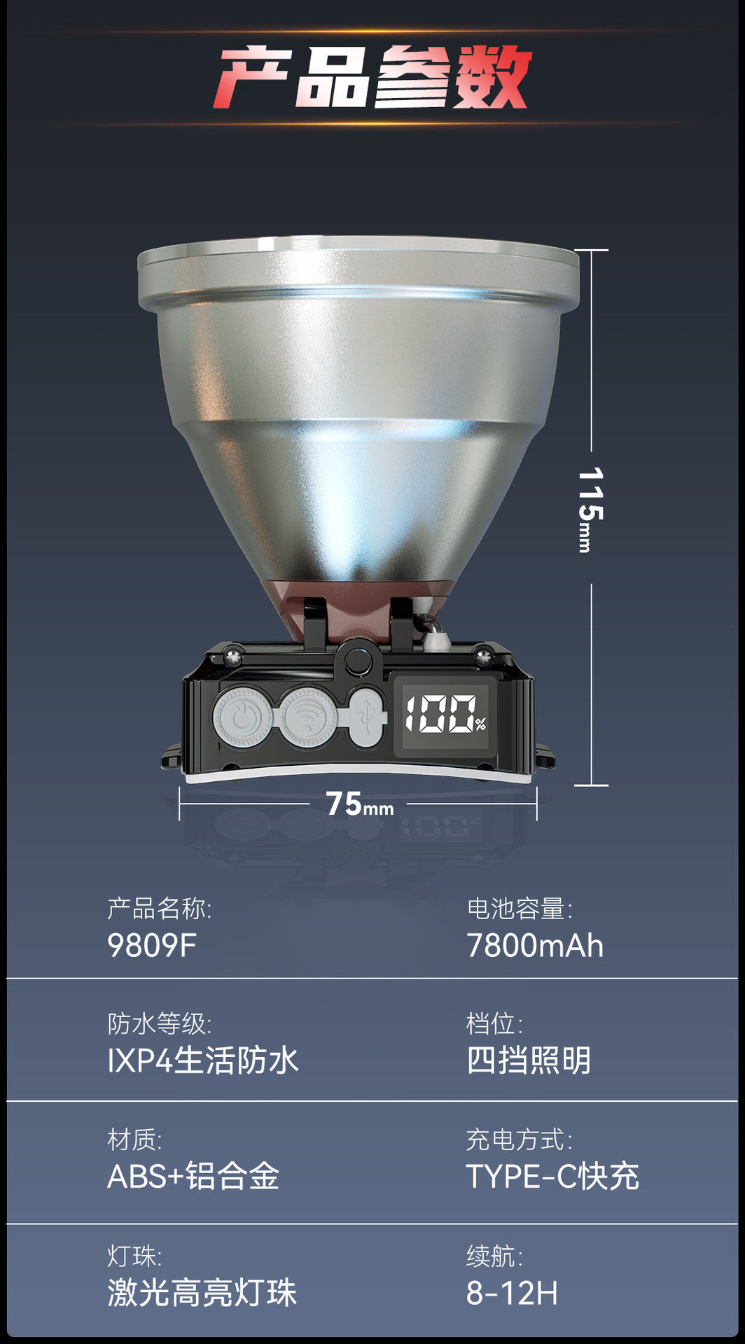 9809F スポットライト + フラッドライト 8000 mAh レーザー芯