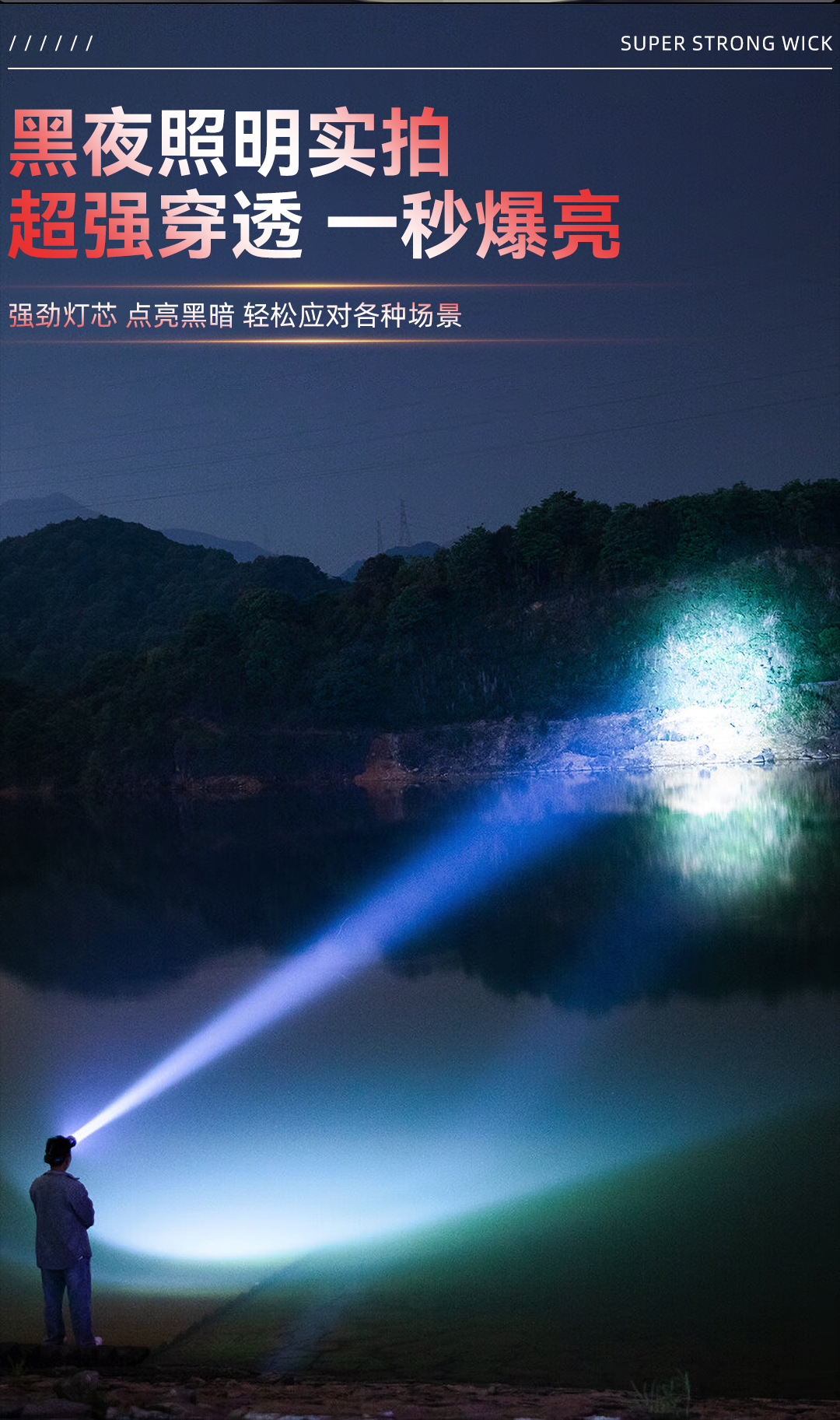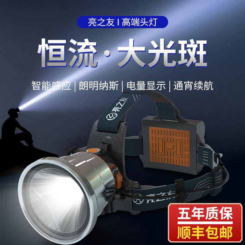 亮之友感应强光充电超亮大功率激光炮钓鱼灯户外通宵超长续航头灯