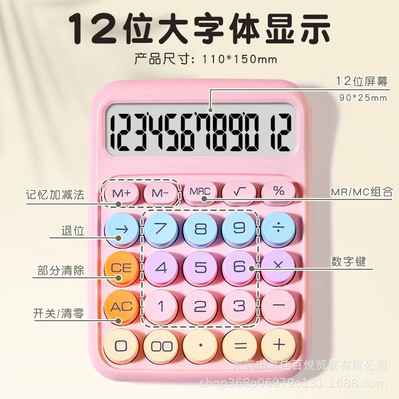 高颜值计算器多渐变色巴胺计算机办公便携学生可爱12位大屏跨境