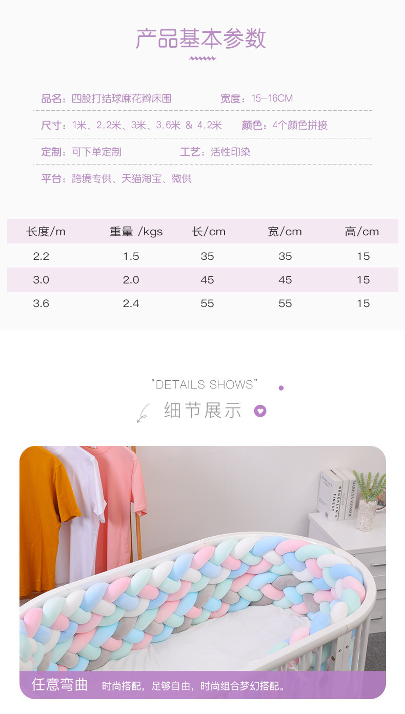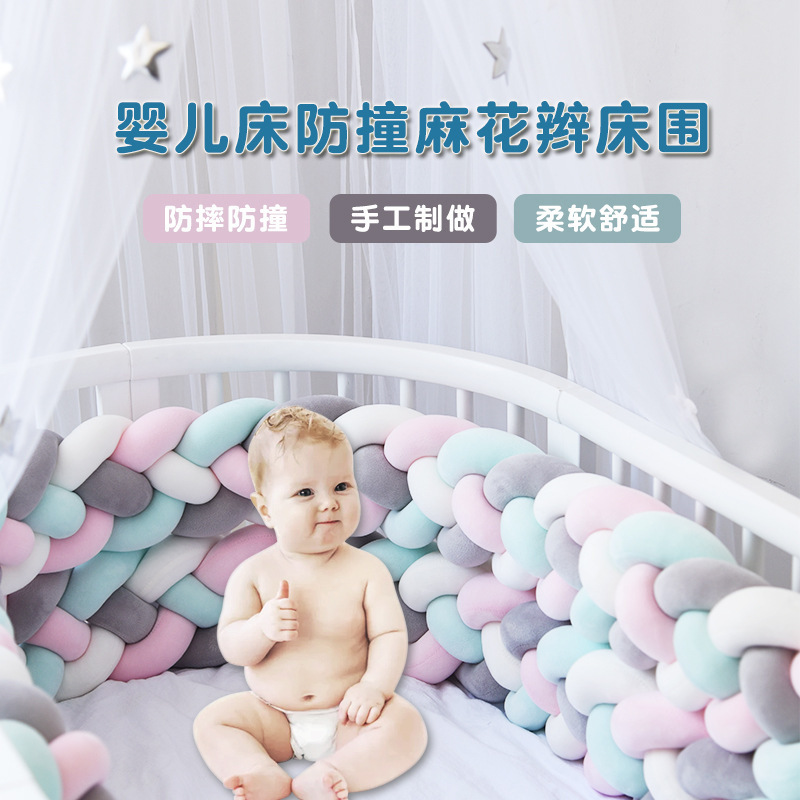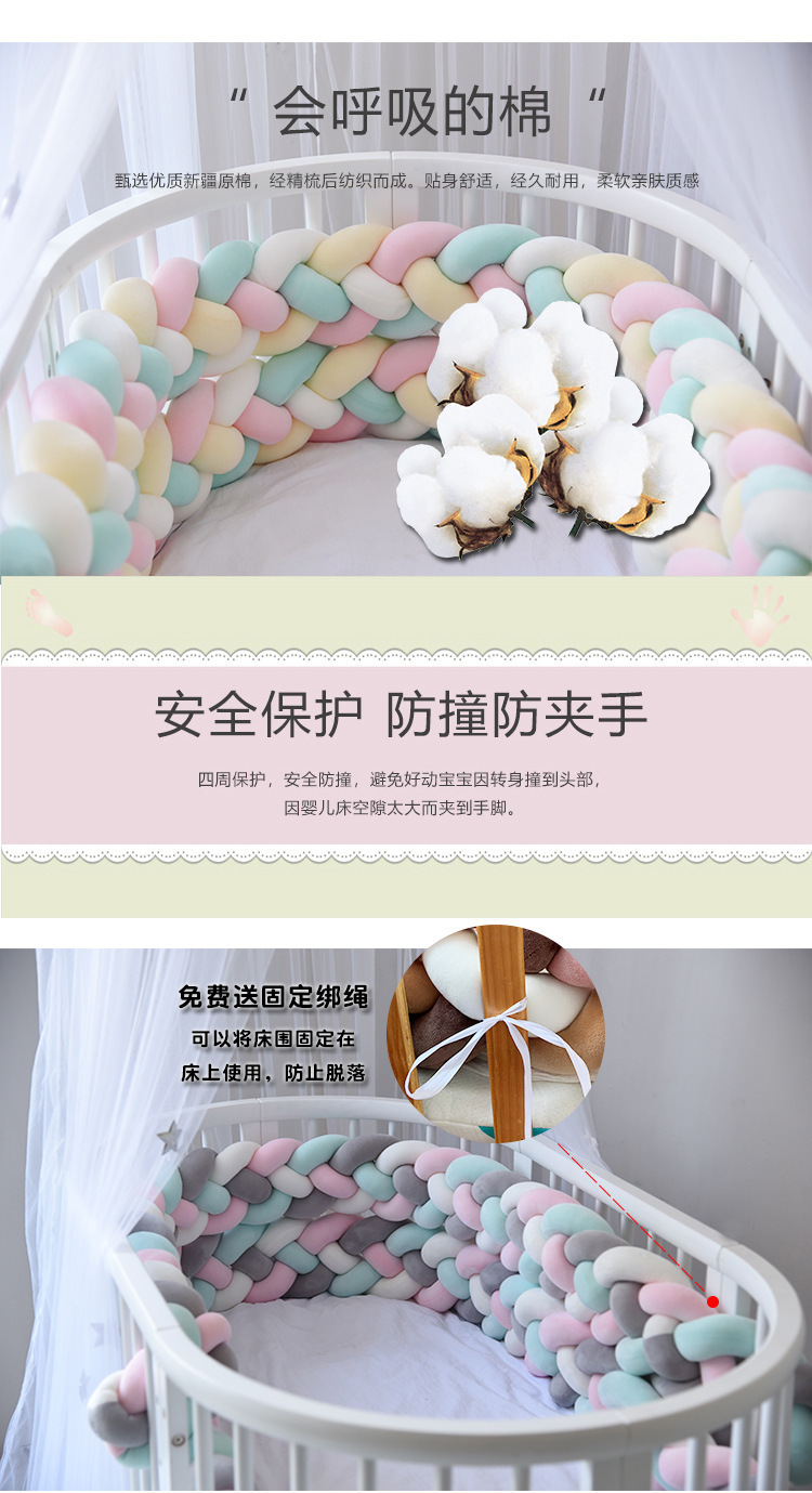 三股婴儿麻花床围宝宝儿童床护栏装饰ins纯手工编织欧式打结抱枕