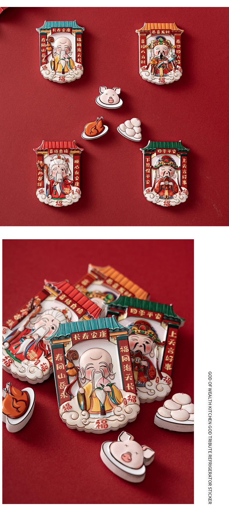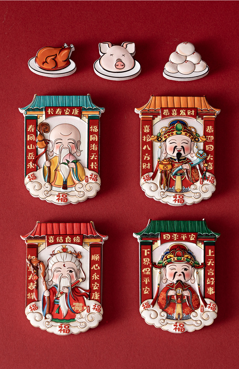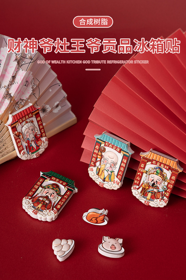中国風財神爺冷蔵庫貼り立体漫画マグネットステッカー創意新年マグネットステッカー国潮文創記念品