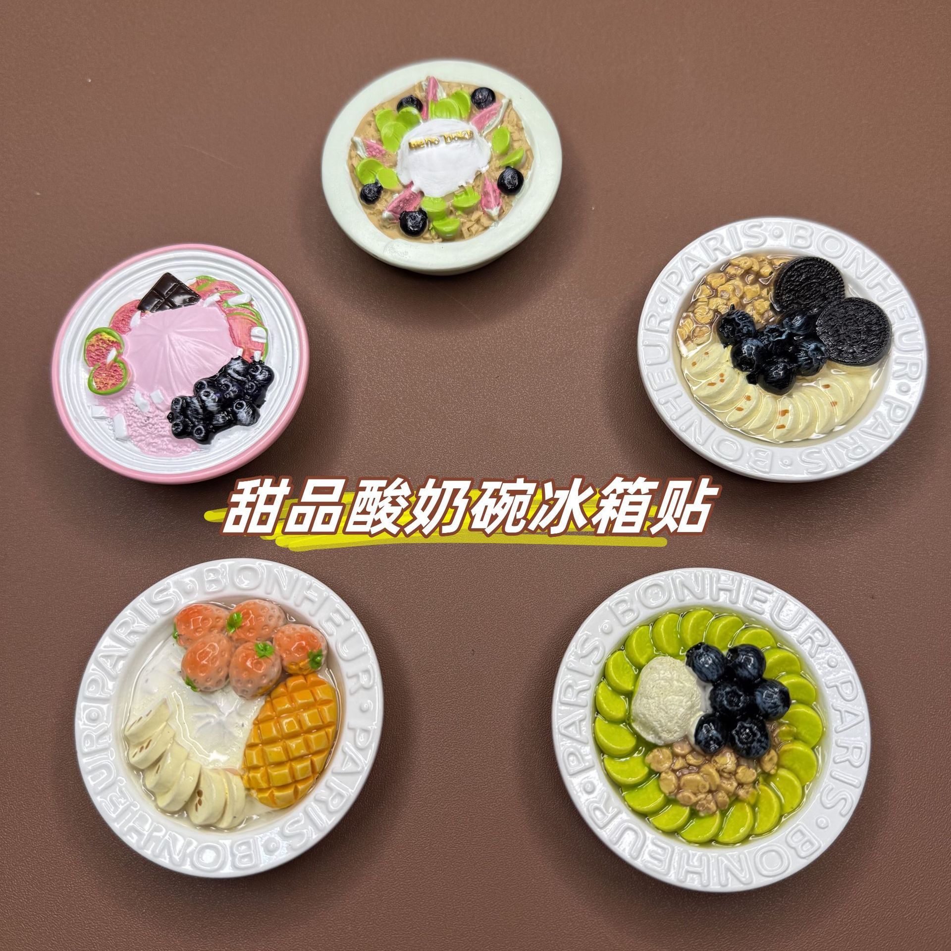 新作フードおもちゃ冷蔵庫マグネット デザートヨーグルトボウル マグネット付き 強力吸着 クリエイティブ磁気樹脂 文化的・創造的な卸売マグネット