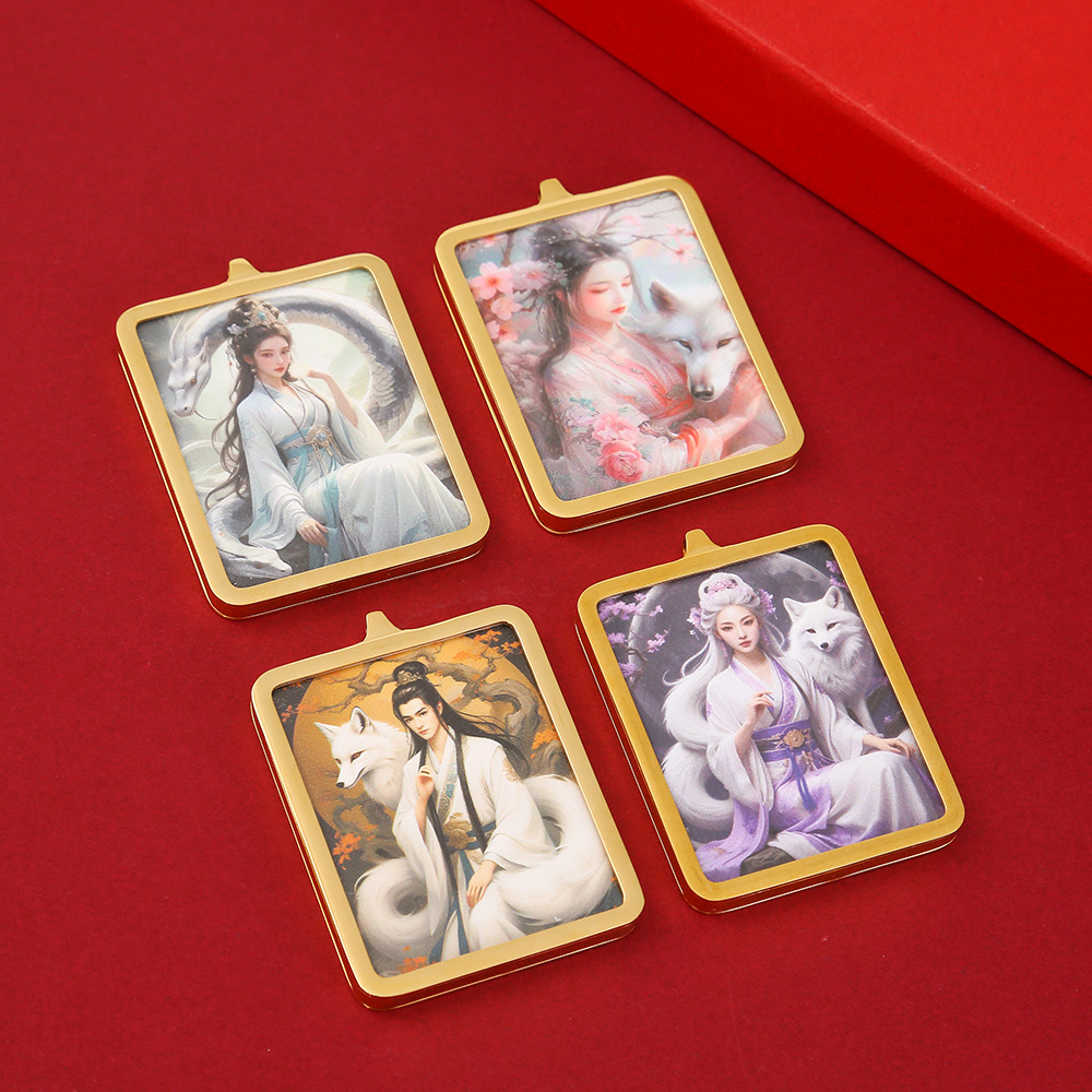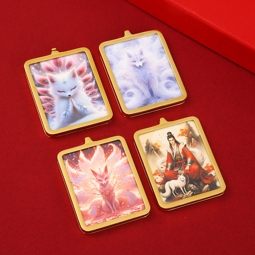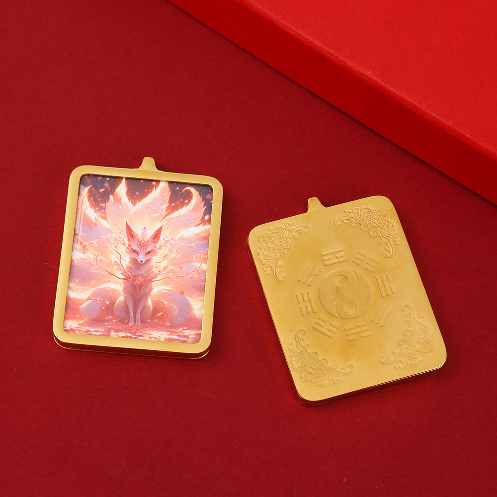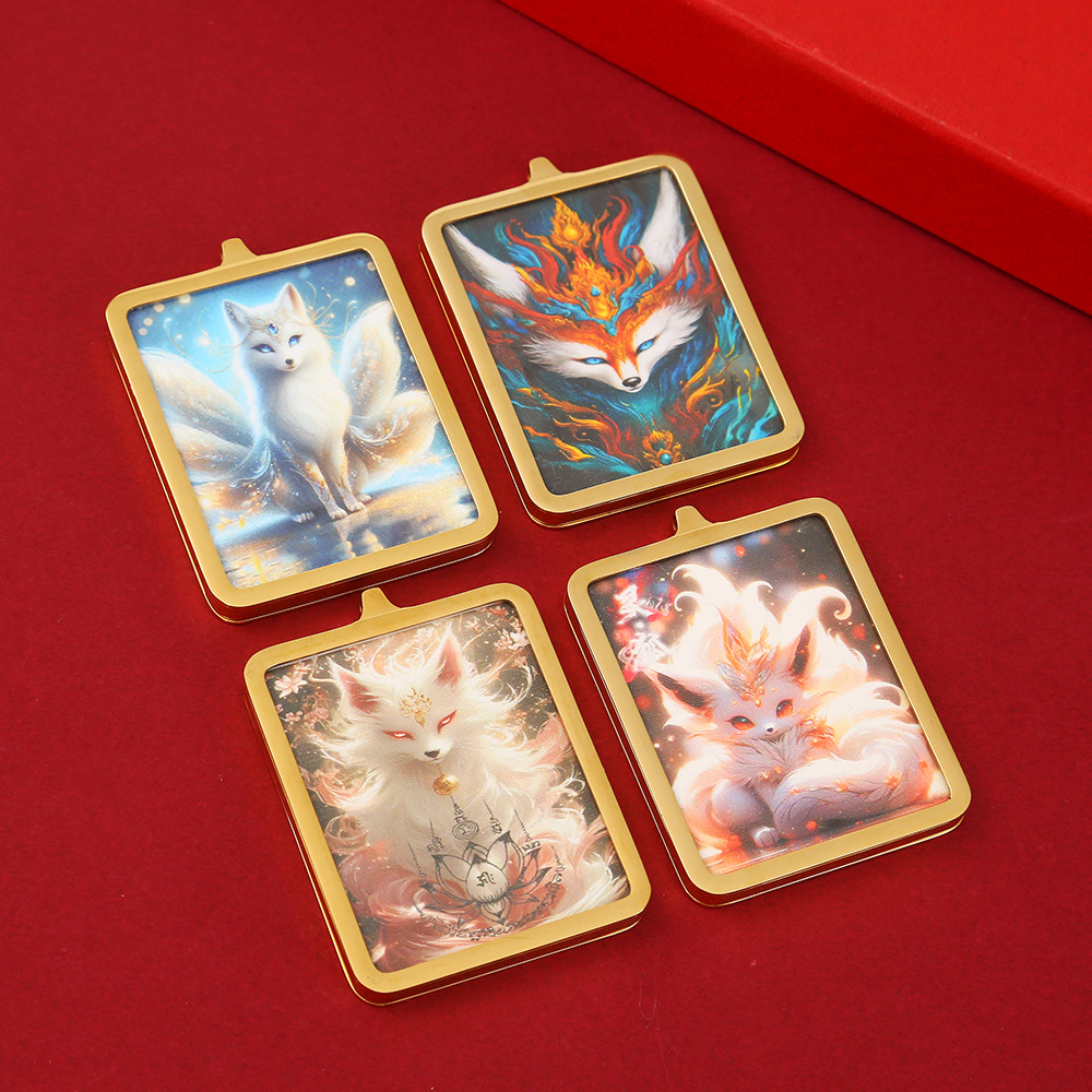新型チタン鋼チベット式唐卡金狐仙狐王ペンダント車掛仏牌旅行記念ペンダント