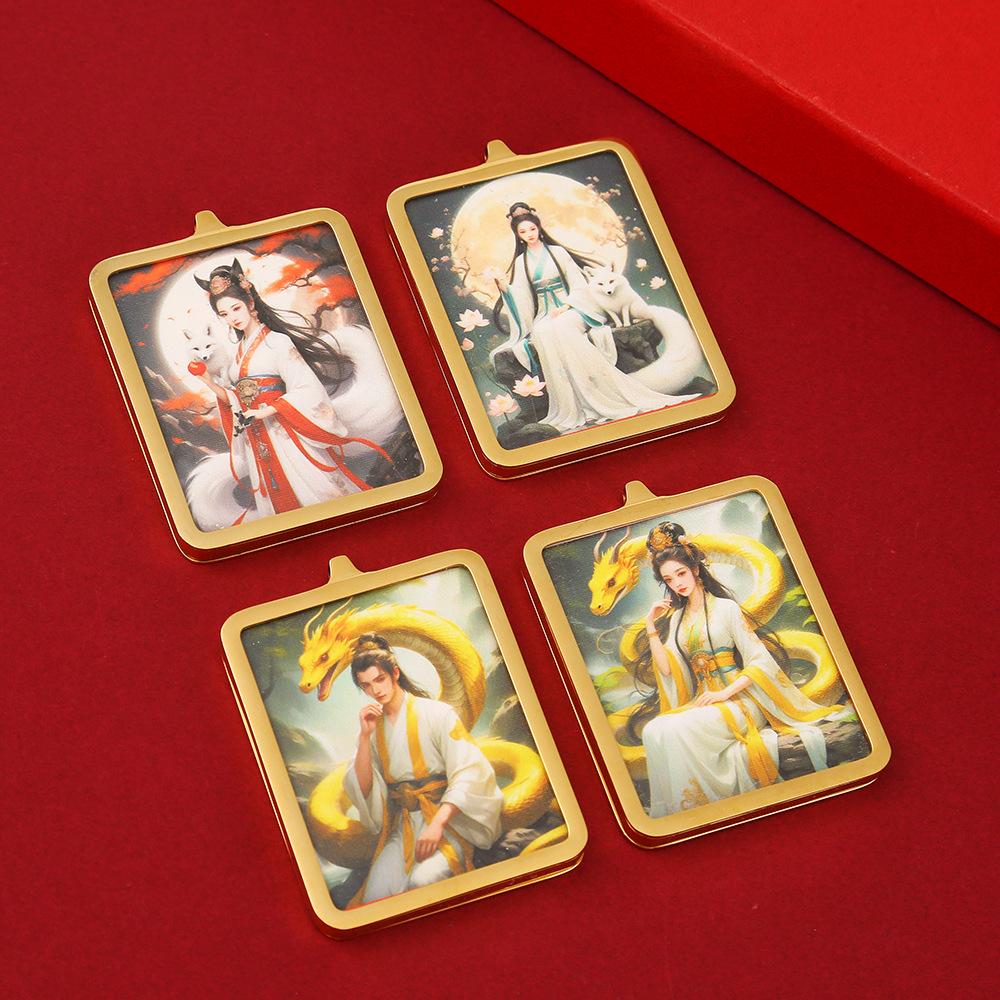 永慈蔵伝唐カード八大守護神十二生肖非手描きミニ唐カードネット赤ネックレスペンダント