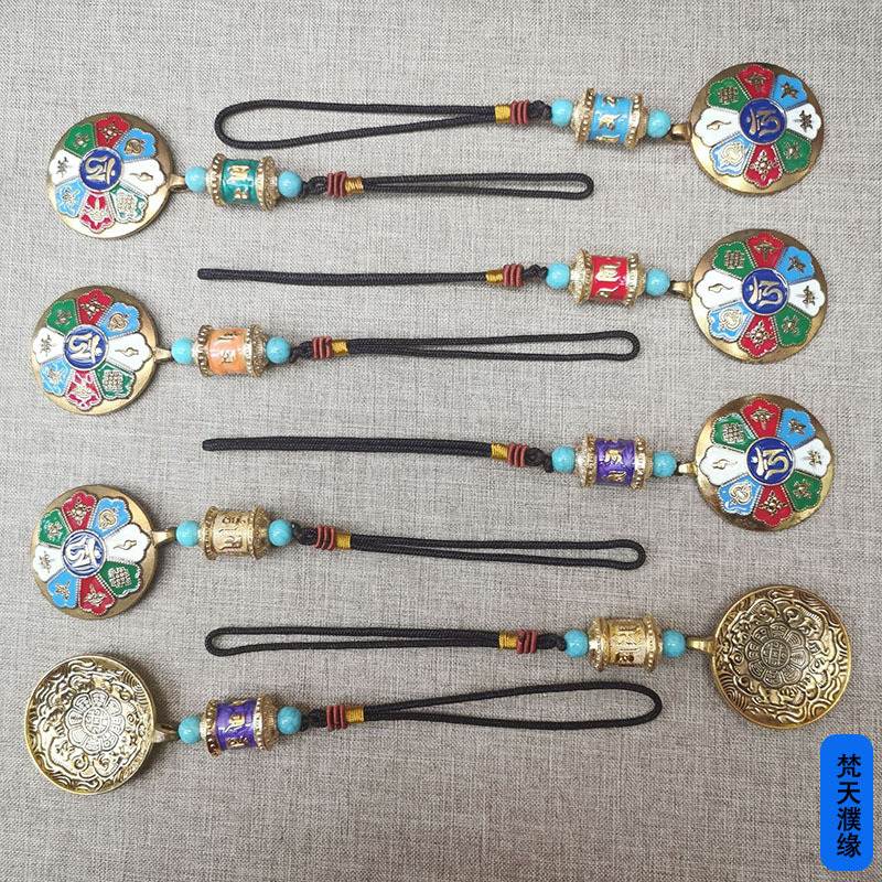 チベット式回転ホイールカラー六字真言ペンダント自動車ペンダント吉祥中国結アクセサリー腰ブランド自動車ペンダント