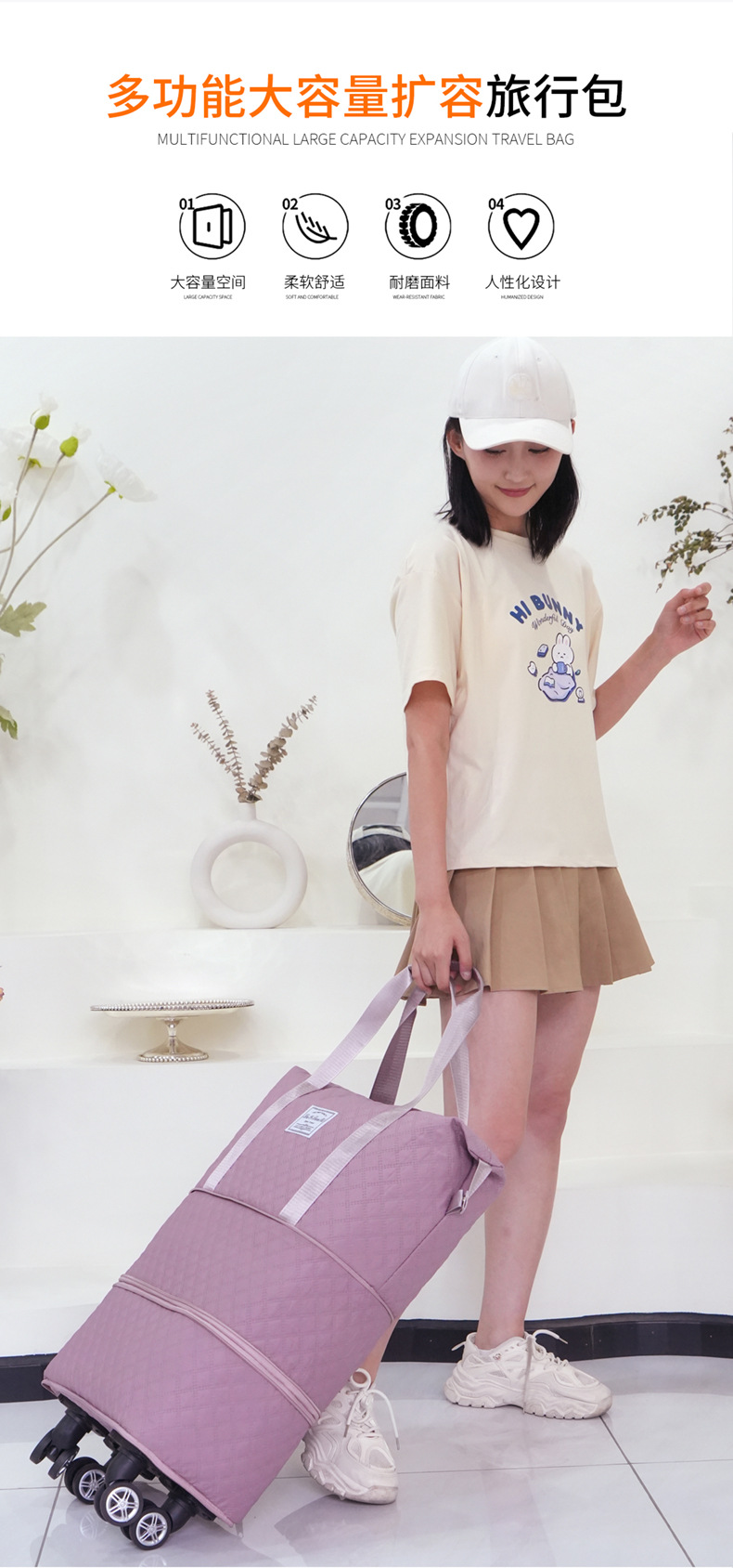 旅行鞄は拡張可能で折り畳み可能な大容量ユニバーサルホイール三層拡張搭乗バッグ引っ越し収納バッグ