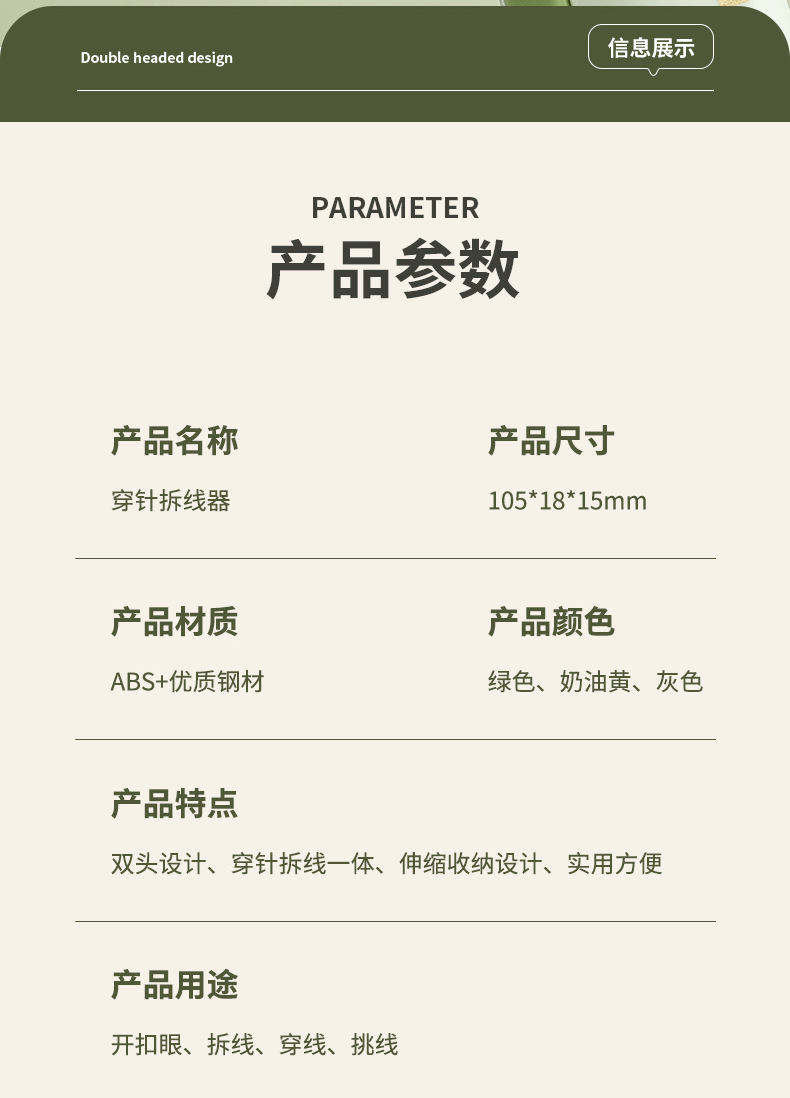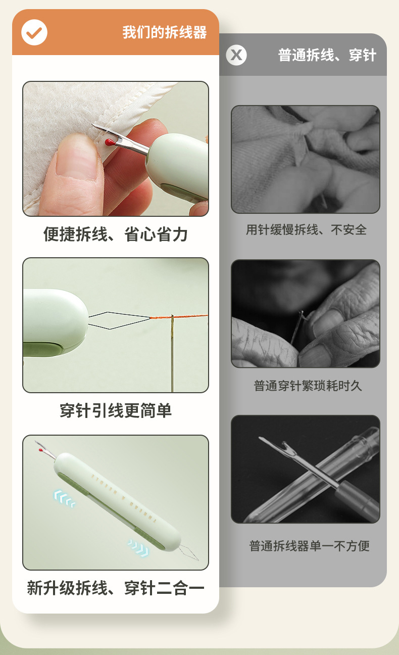 穿针器家用多功能二合一手工缝纫快速拆线器老人专用双头挑线工具
