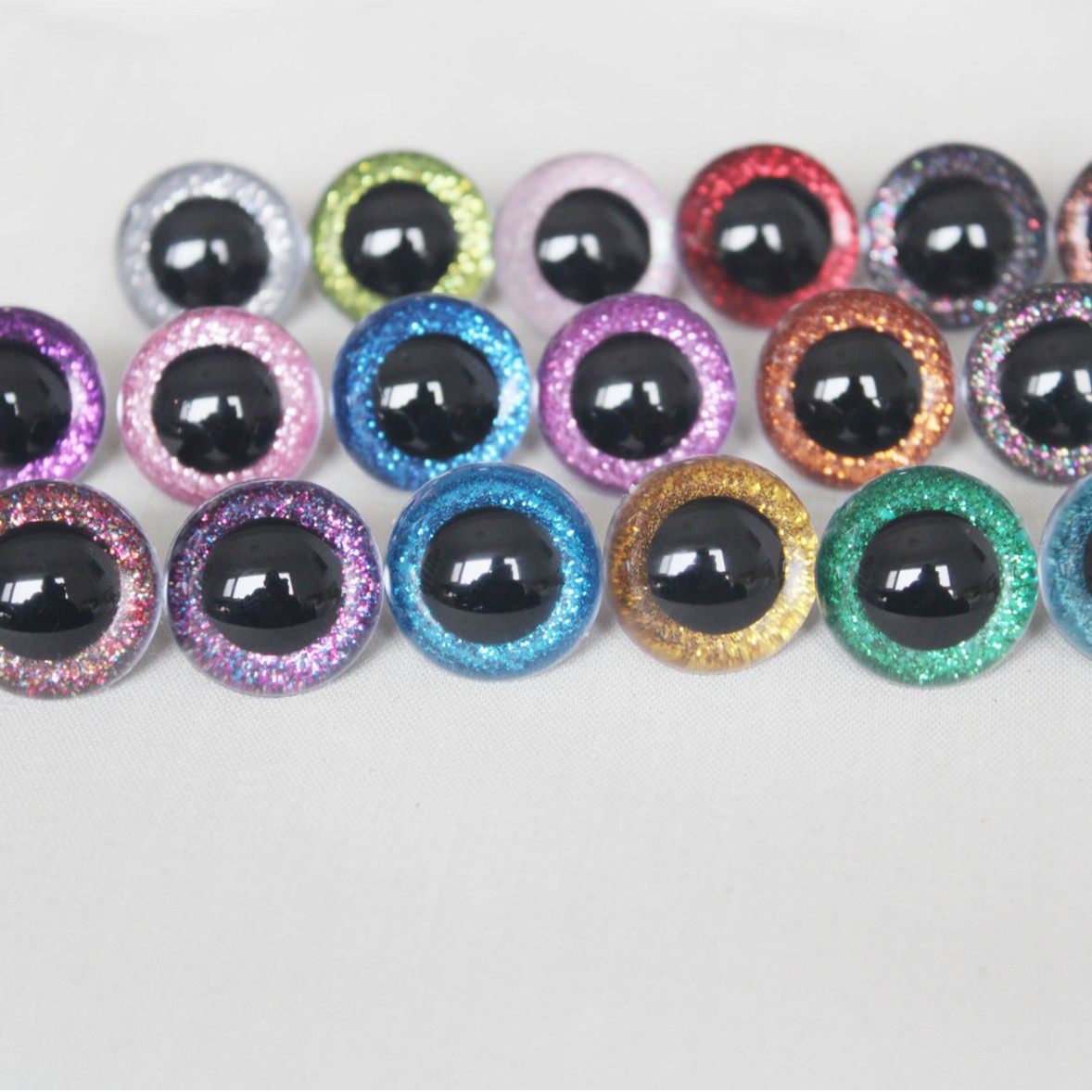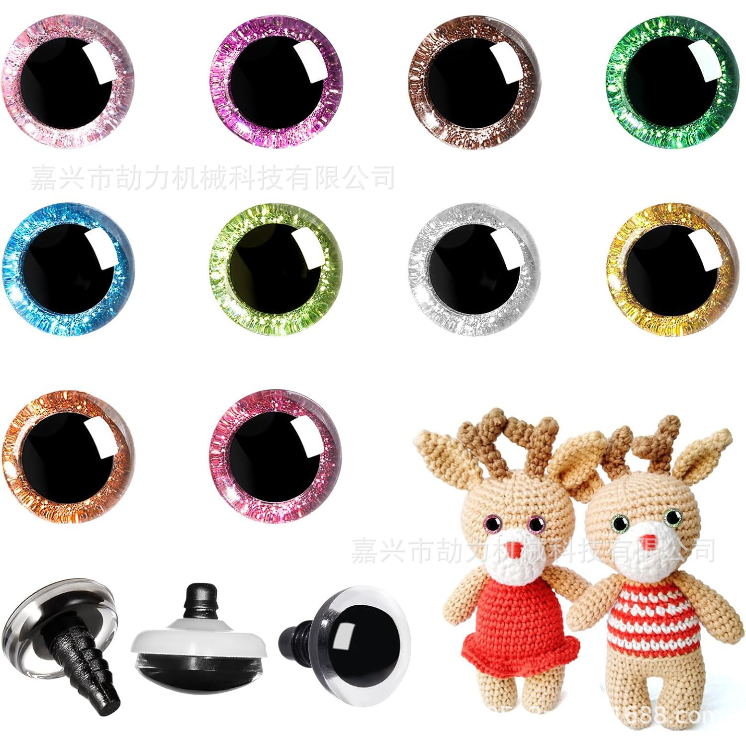跨境亚马逊-散装闪光塑料安全眼睛适用于工艺钩针娃娃眼睛带垫圈