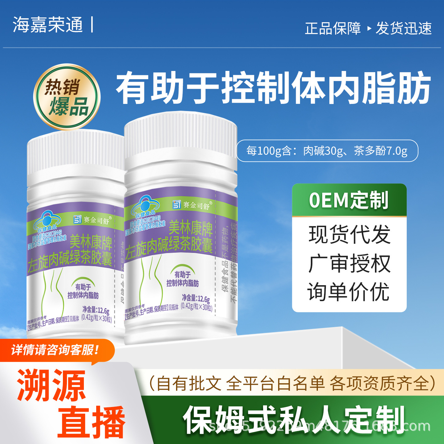 厂家现货左旋肉碱荷叶泽泻胶囊有助于控制体内脂肪批发一件代发