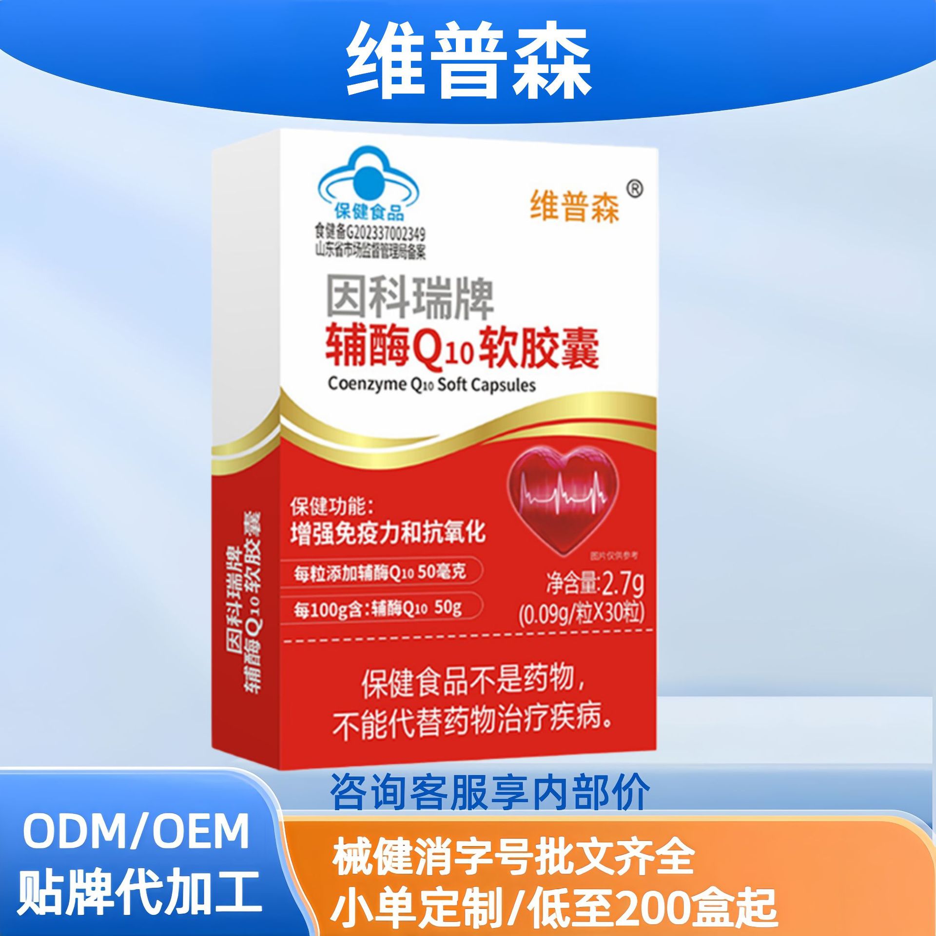 维普森辅酶Q10软胶囊褪黑素片葡萄籽芦荟胶囊左旋肉碱绿茶胶囊现