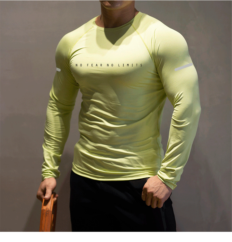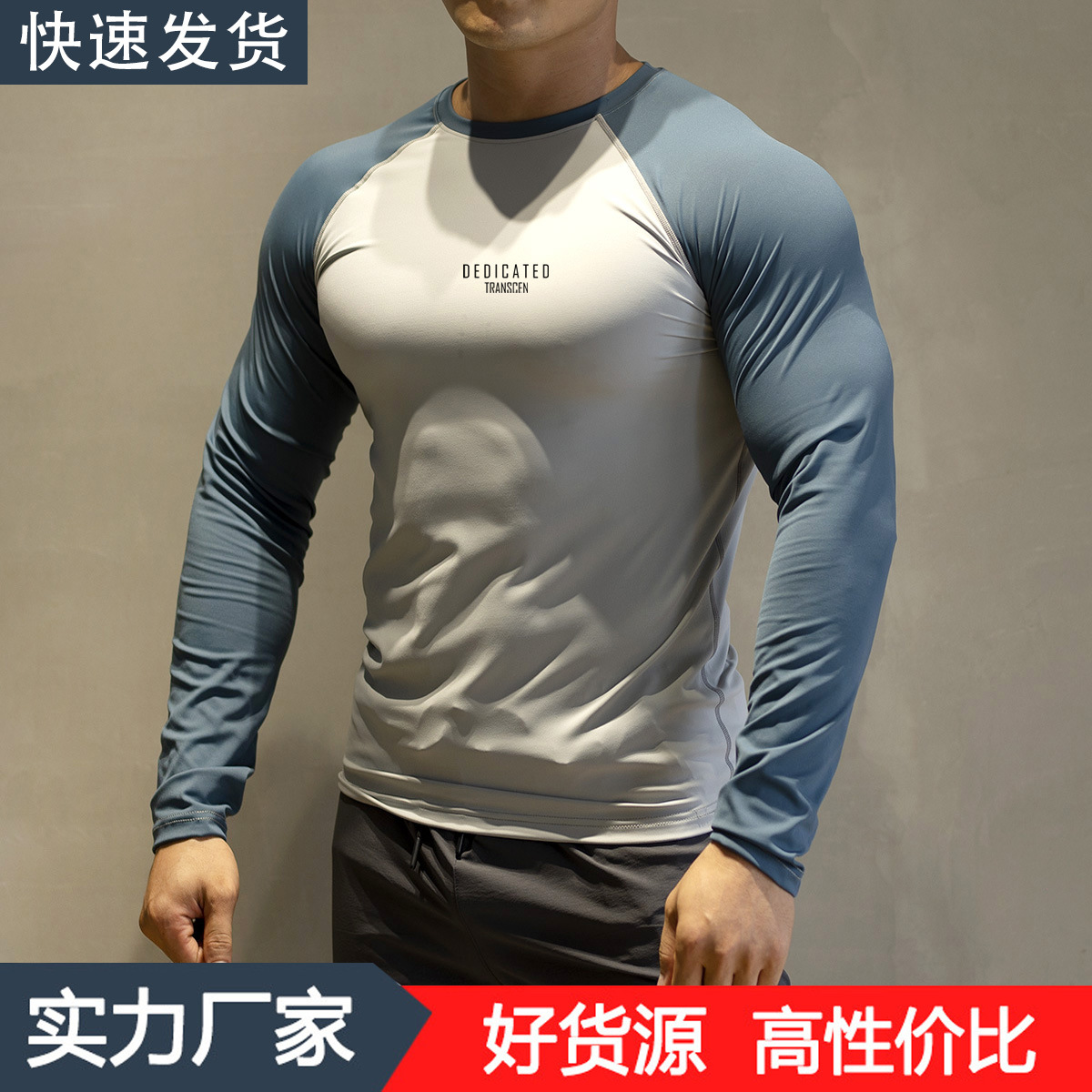 フィットネス服日焼け止め速乾衣打底男高弾力春秋運動ランニング長袖tシャツフィットネス登山潮