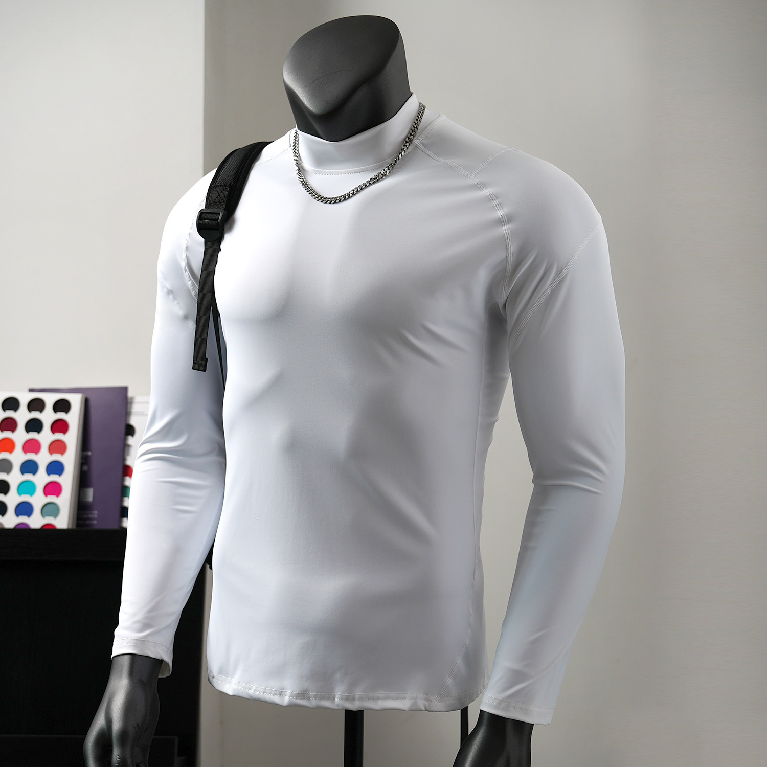 跨境秋冬新款男士运动健身衣长袖卫衣修身高弹速干透气秋衣半高领