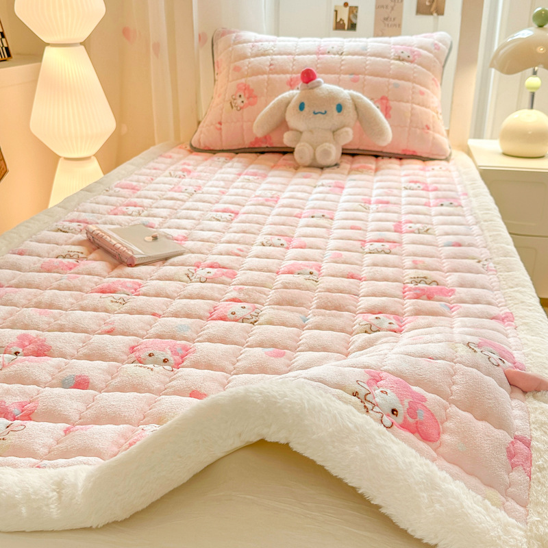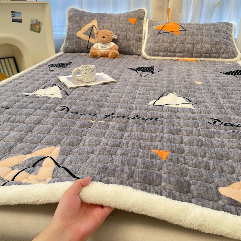 冬季加厚牛奶绒床垫三件套a类ins小清新宝宝绒裸睡床褥子防滑护垫