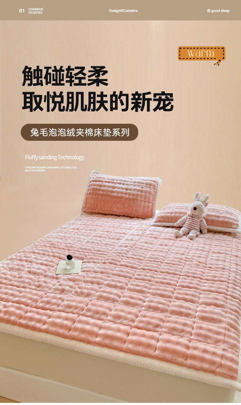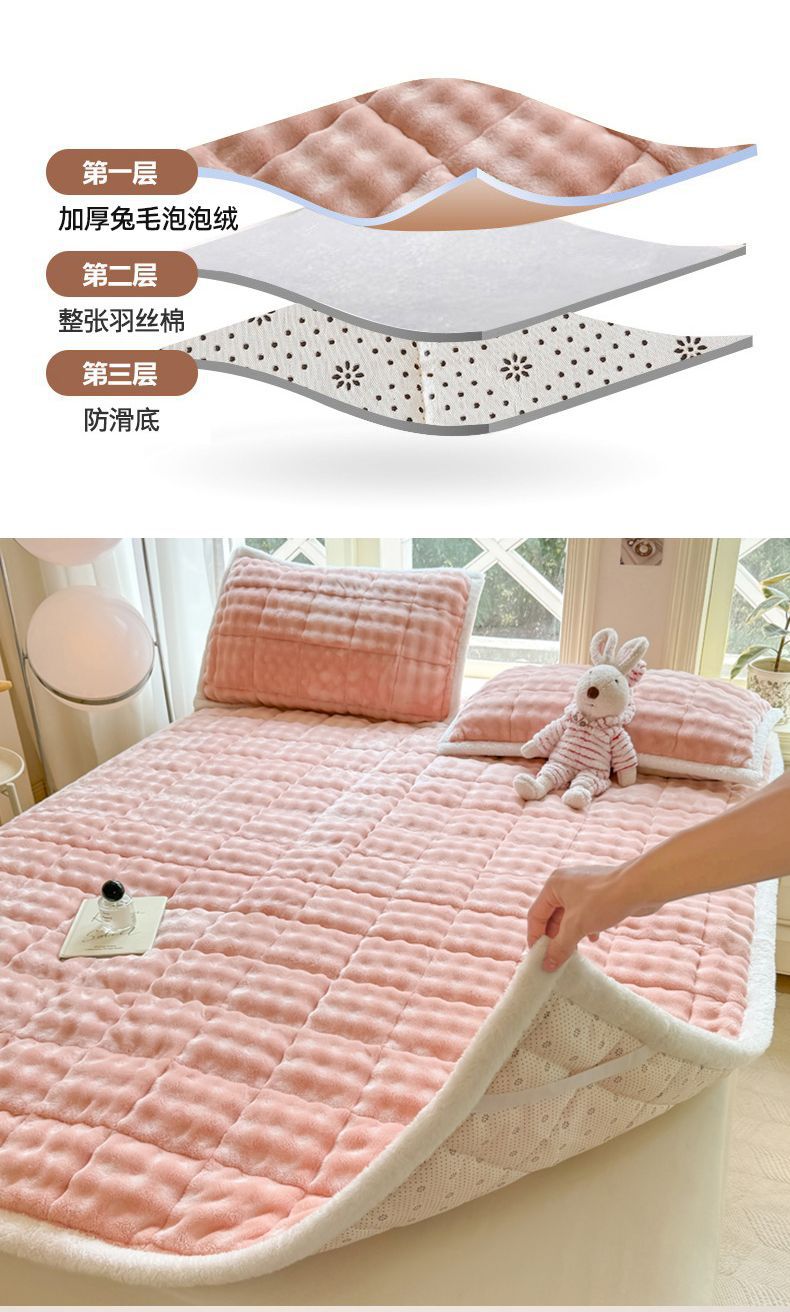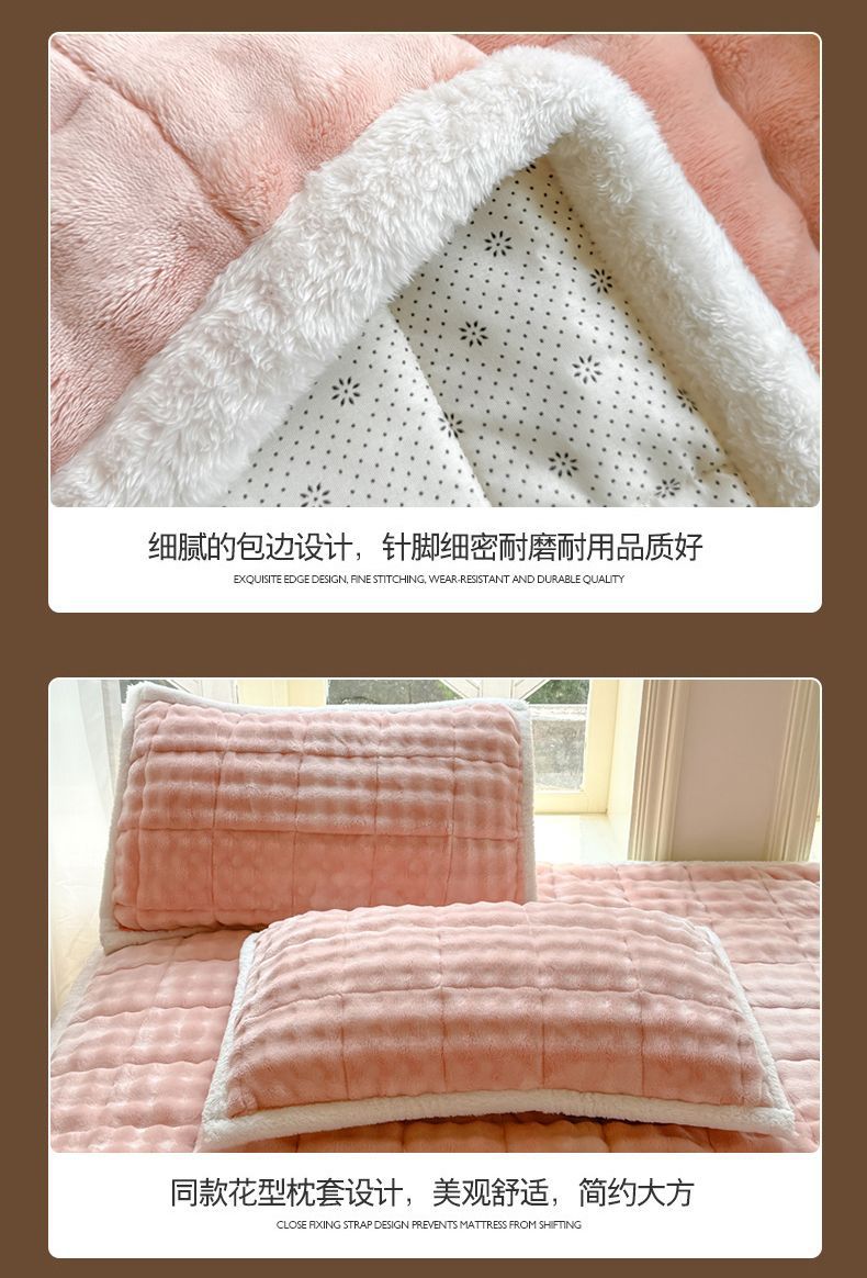 冬季加厚牛奶绒床垫三件套A类加绒夹棉床单学生宿舍软垫子床褥子