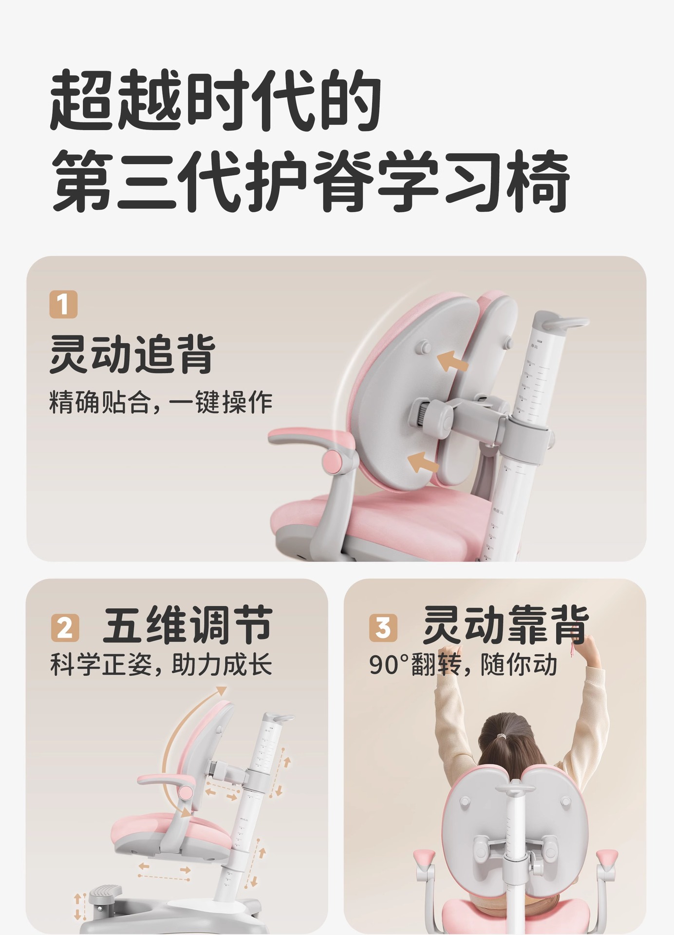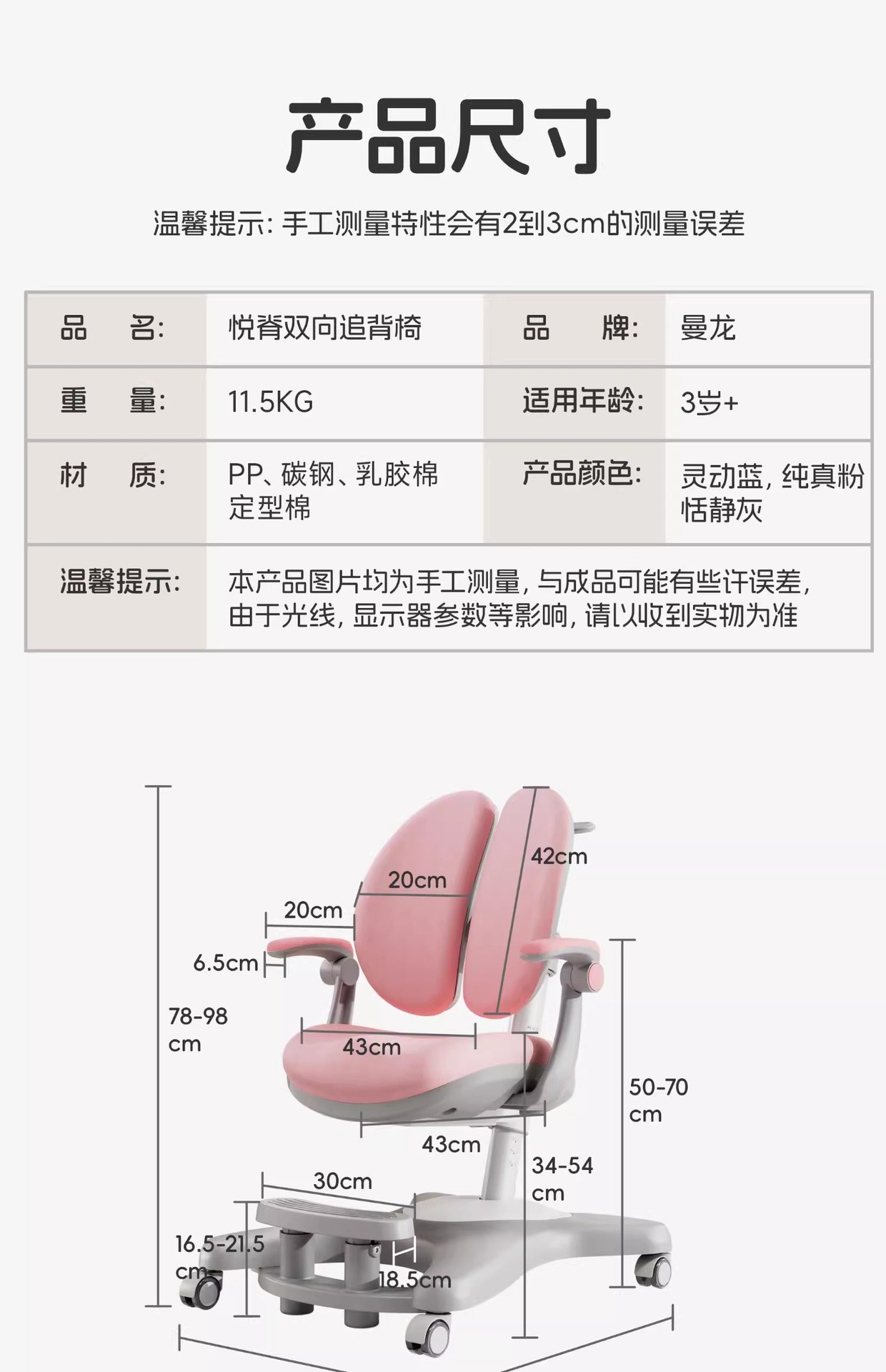曼龍悦脊双方向追背椅子昇降調節可能な学習椅子児童矯正座り方シート家庭用机と椅子
