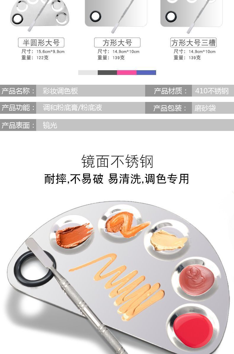 彩妆调色板化妆品粉底液遮瑕膏指环不锈钢专业调色盘带棒定妆