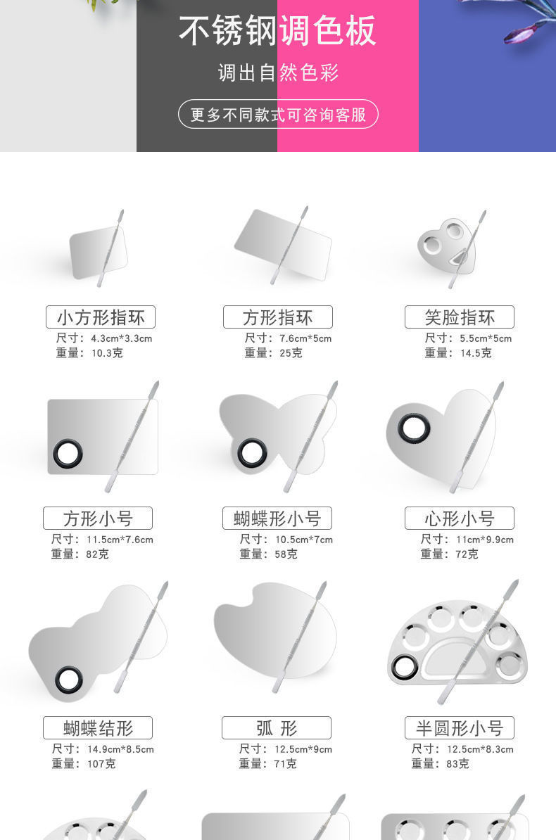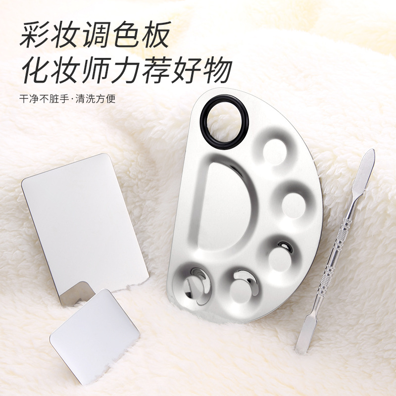 调色美妆工具不锈钢美甲化妆调色盘调色棒彩妆粉底绘画调色板套装