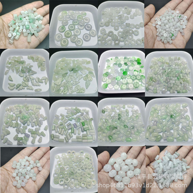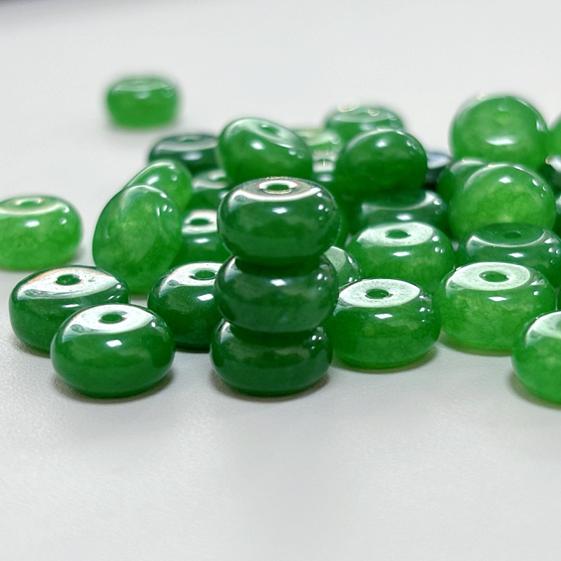 翡翠散珠乾青祖母緑馬玉そろばん玉平安ボタンDIY手作りビーズチェーン部品
