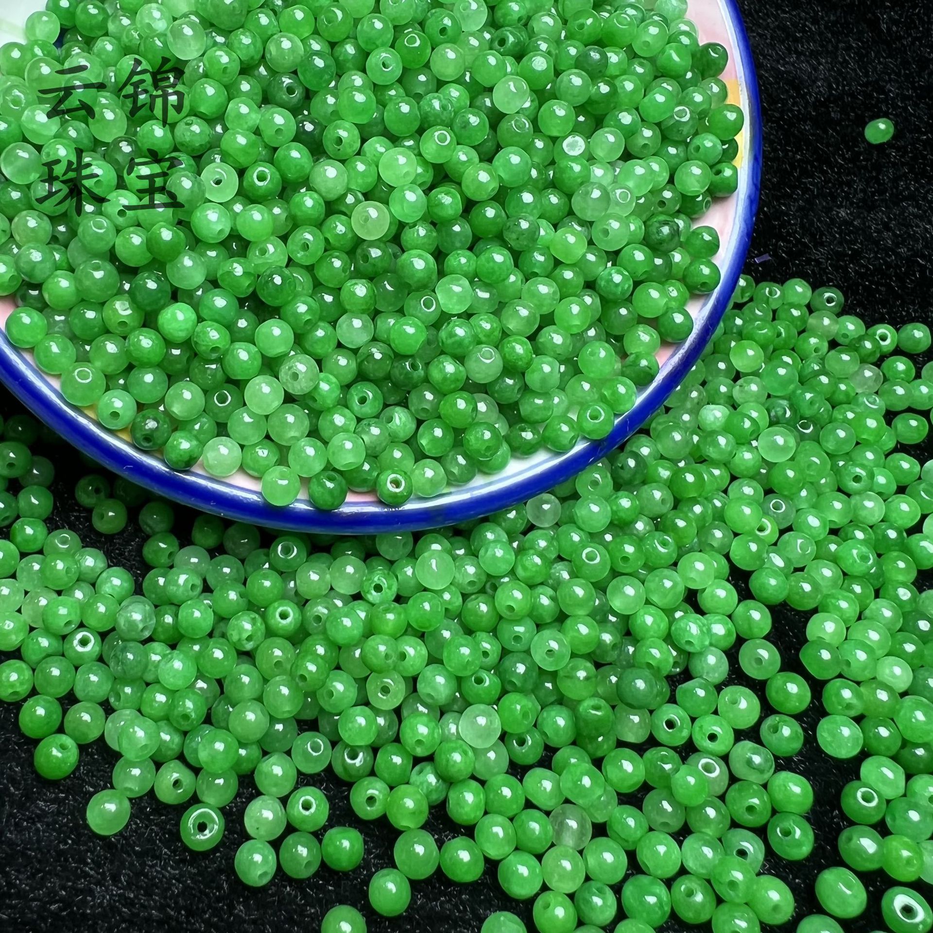 翡翠乾青辛緑4mm小米粒散珠ボールdiy編みブレスレットネックレスひげ玉ビーズビーズ