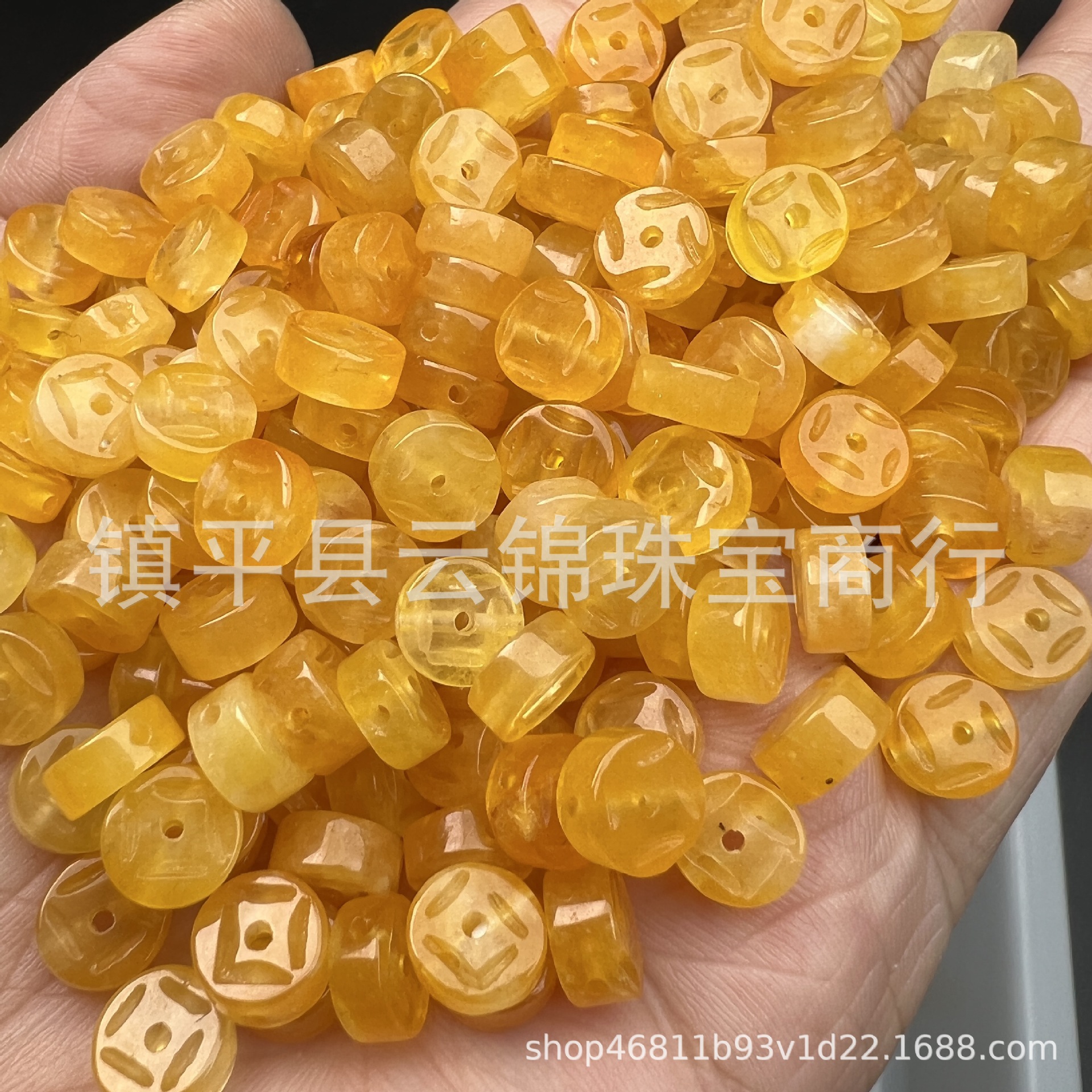 黄翡翠8mm黄色銅銭小串玉翡翠銭串珠横縦穴アクセサリーdiyアクセサリー仕切り