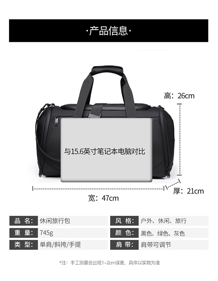 新款跨境厚皮膜旅行包大容量干湿分离运动健身包瑜伽包手提斜挎包