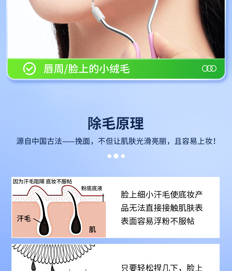 面部脱毛器 脸部除毛器 弹簧绞脸毛美颜挽面器去唇毛刮汗毛拔毛器