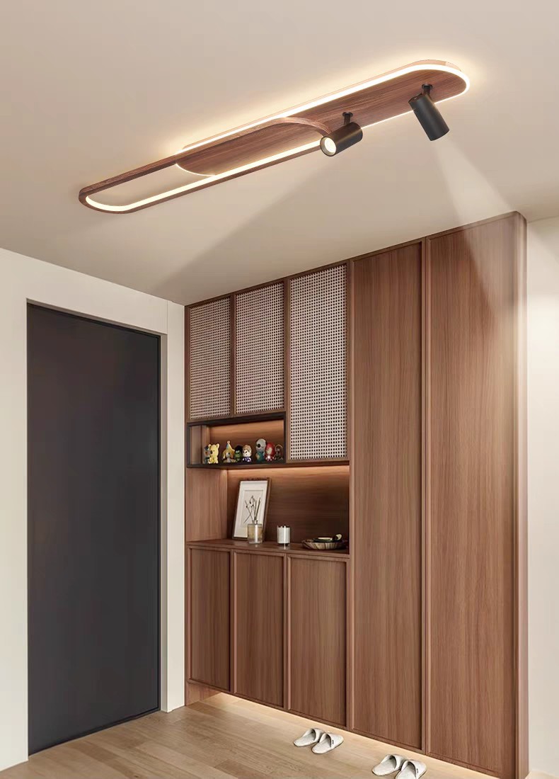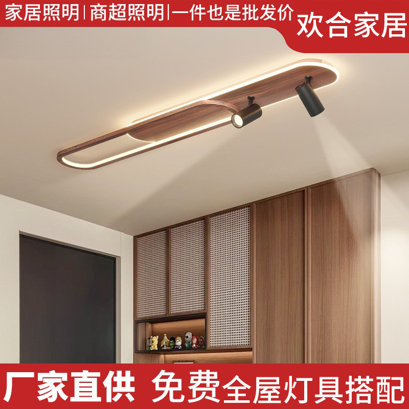 中古风过道走廊灯简约木纹长条射灯客厅LED吸顶灯入户玄关衣帽间