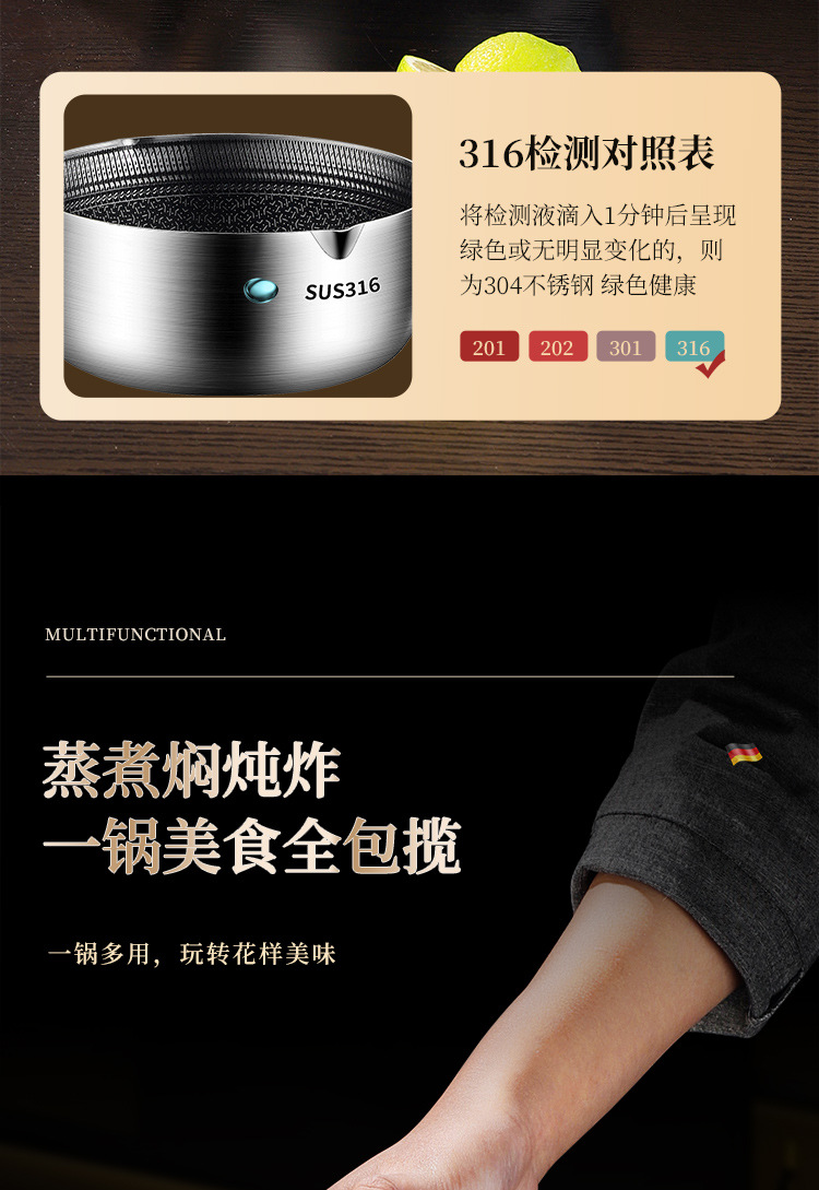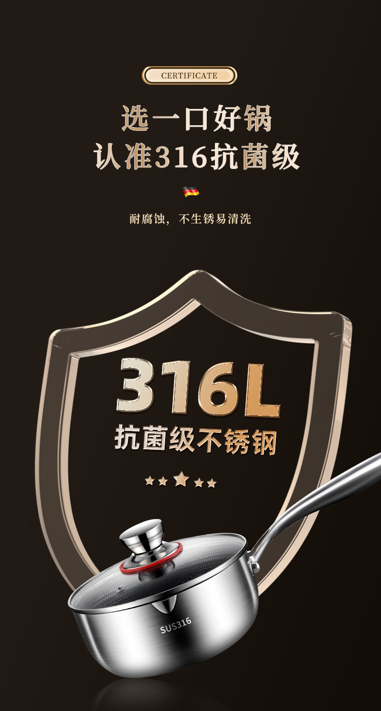 ドイツ316ステンレス雪平鍋赤ちゃん補助鍋家庭用無粘着鍋多機能ミルク鍋小炒め鍋