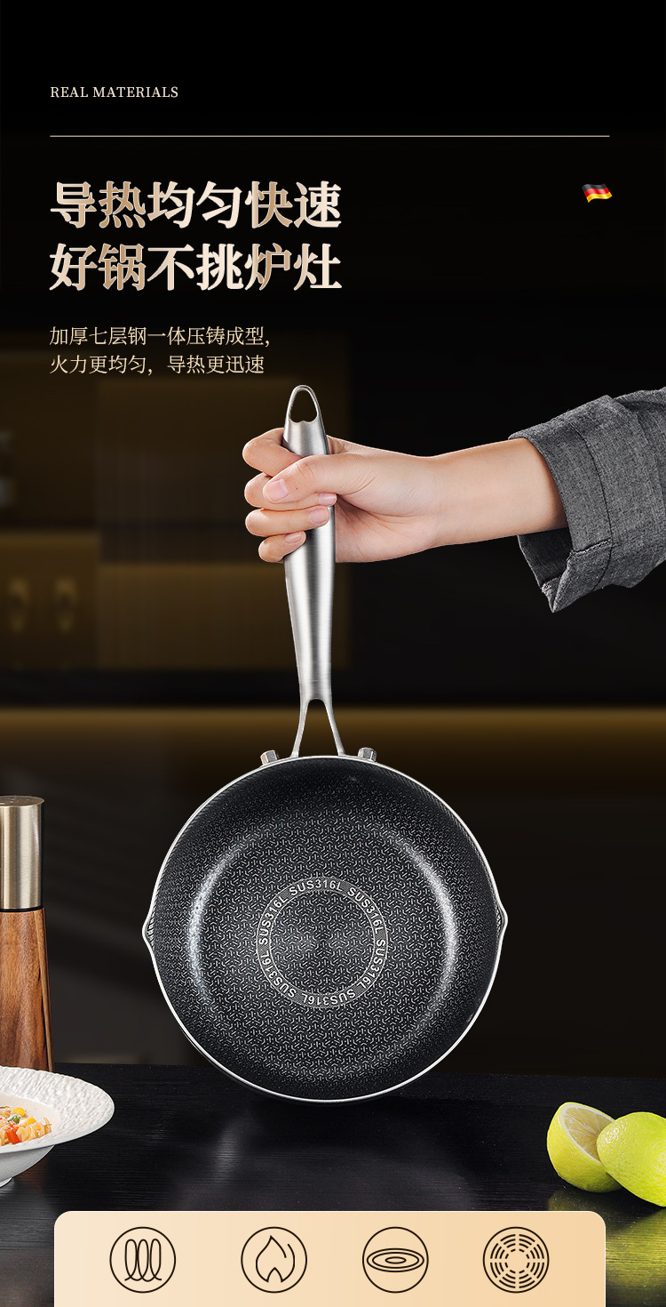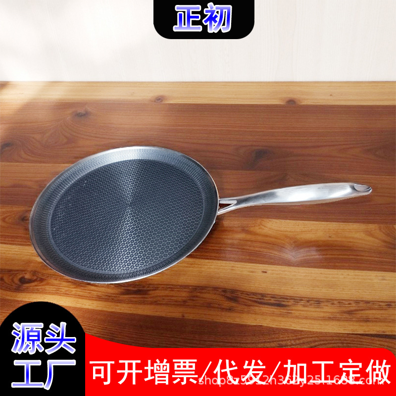 ステンレス鋼フライパンピザパン厚みのある平底フライパンノンスティックパンハニカム三層鋼目玉焼きステーキパンケーキパン