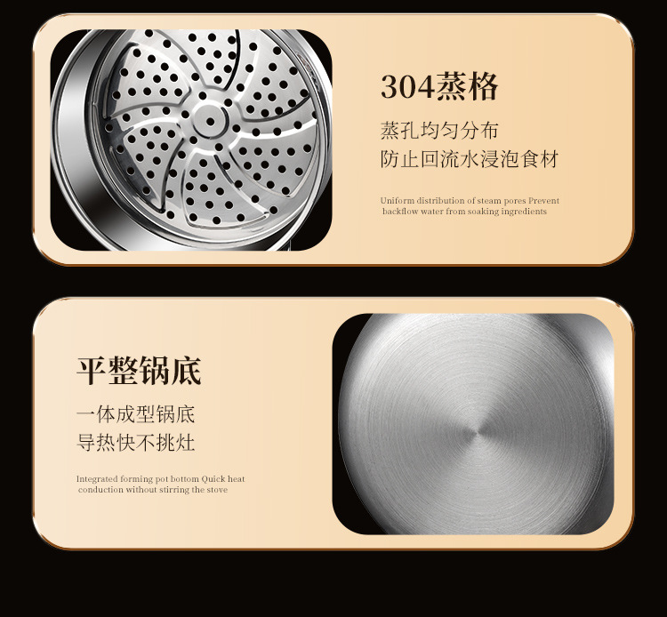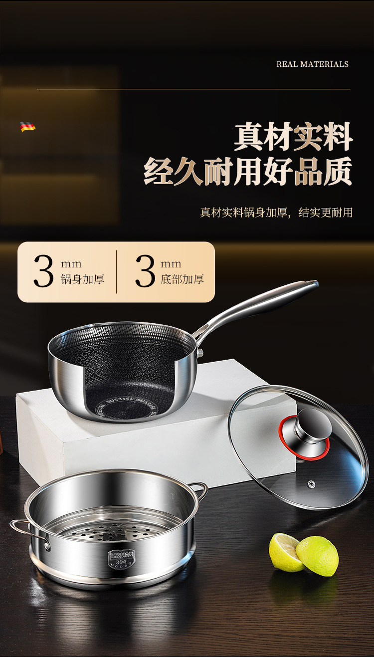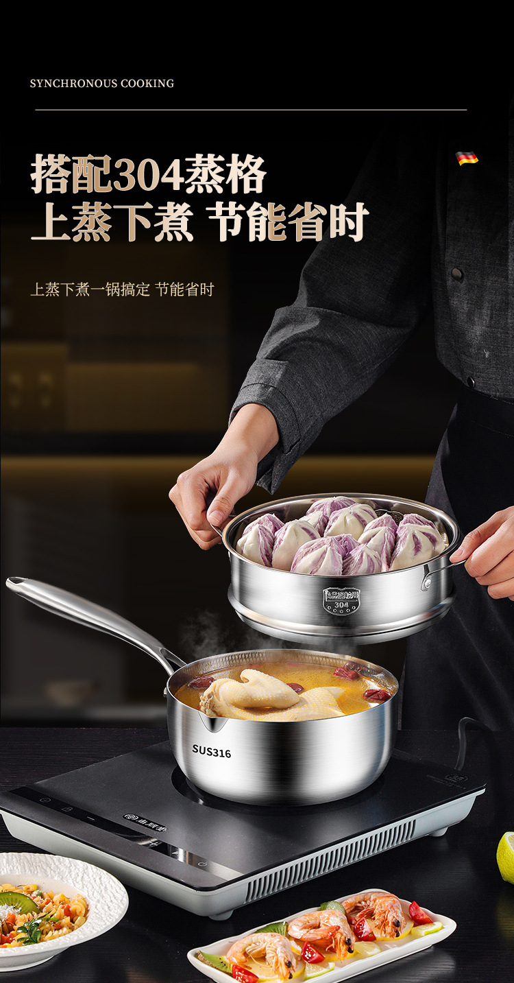 日式雪平锅316三层钢家用煮面带蒸格奶锅宝宝辅食锅不锈钢不粘锅