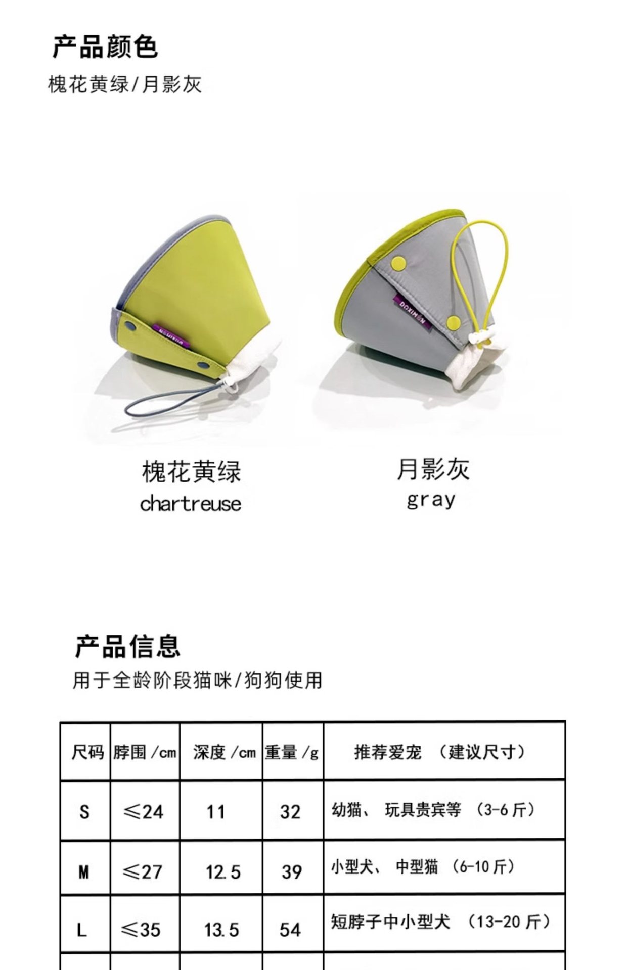 S (シングルブレスト、子猫と子犬 1.5-3kg 歳),M (調節可能なダブルブレスト、猫と犬にユニバーサル 3-5kg つ),L (調節可能なダブルブレスト、中型犬 6.5-10kg 個),XL (調節可能なダブルブレスト、中型犬用 10-13kg つ)