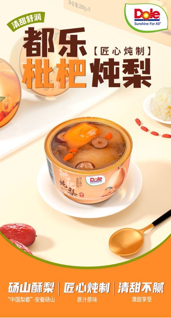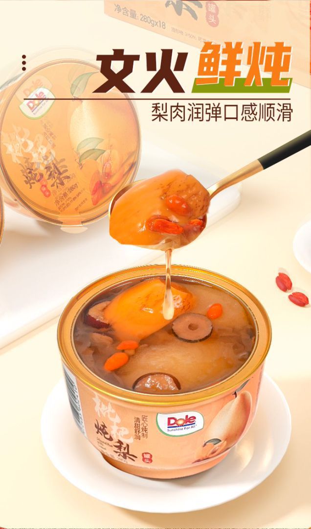 DOLE都楽銀耳/ビワ煮込み梨280g小碗氷砂糖山メレンゲ果物缶詰カジュアルスナック