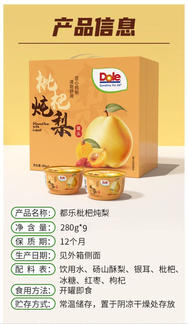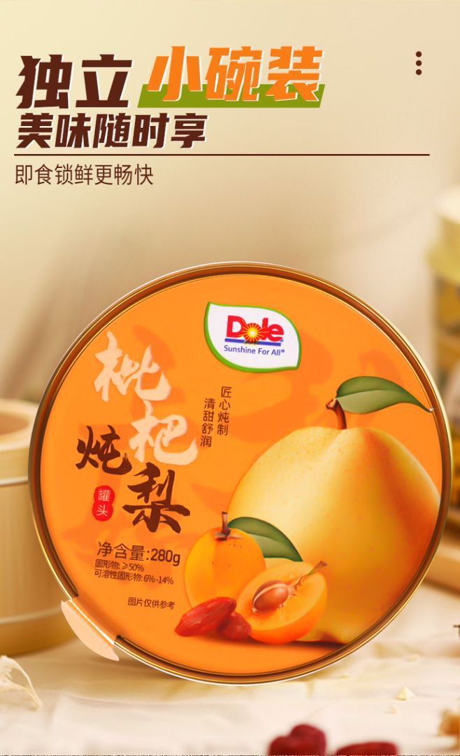 Dole都乐陈皮枇杷炖梨砀山酥梨水果罐头小碗休闲食品6罐礼盒装