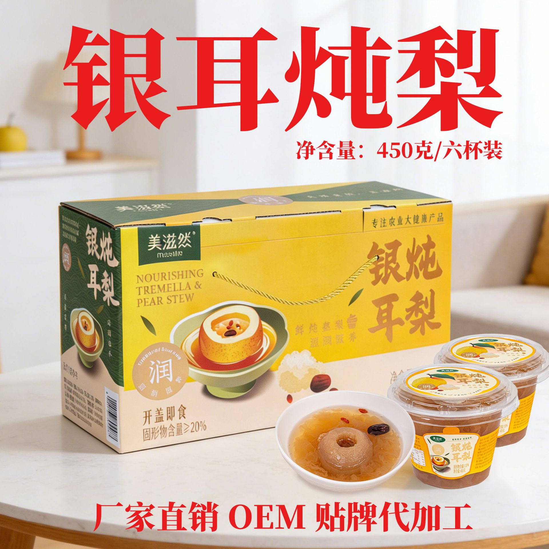 银耳炖梨450g礼盒装雪梨炖开盖即食速食罐头炖梨整颗梨