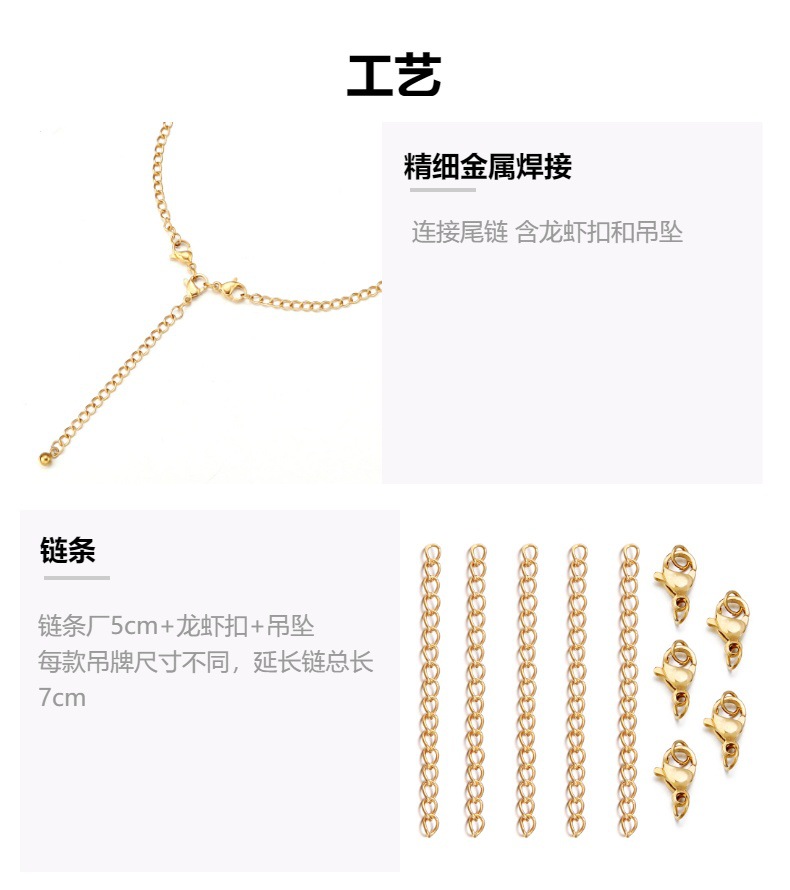 ステンレス愛五角星吊牌尾珠チタン鋼保色真金接続片尾鎖吊牌ネックレスブレスレット牌