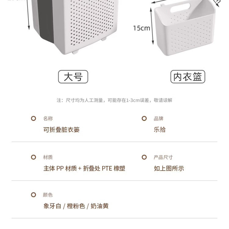 严选折叠脏衣篮便携式衣服收纳筐大容量家用卧室卫生间壁挂脏衣篓
