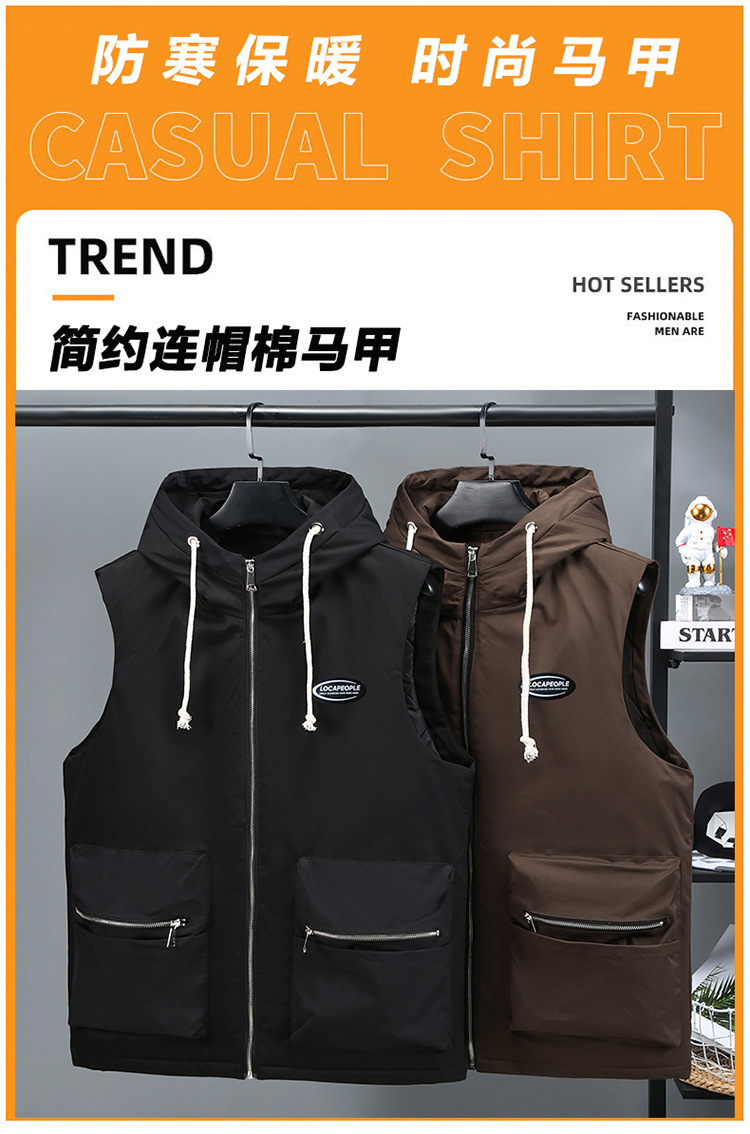 秋冬の新型の増肥は大きいポケットのファスナーの綿のベストを増加します。