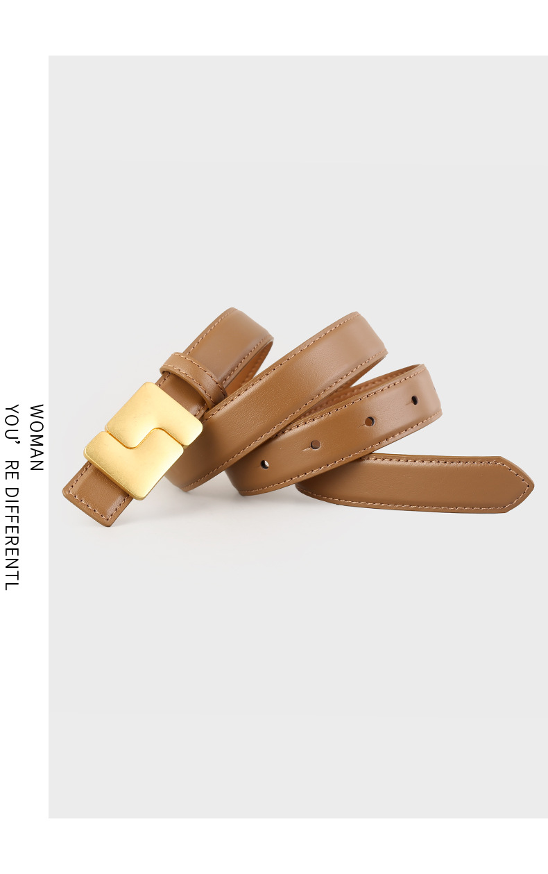 ベルトレディース新作おしゃれレトロゴールドロングボードバックルトップ層牛革ベルト高級感ウエストシール工場現物