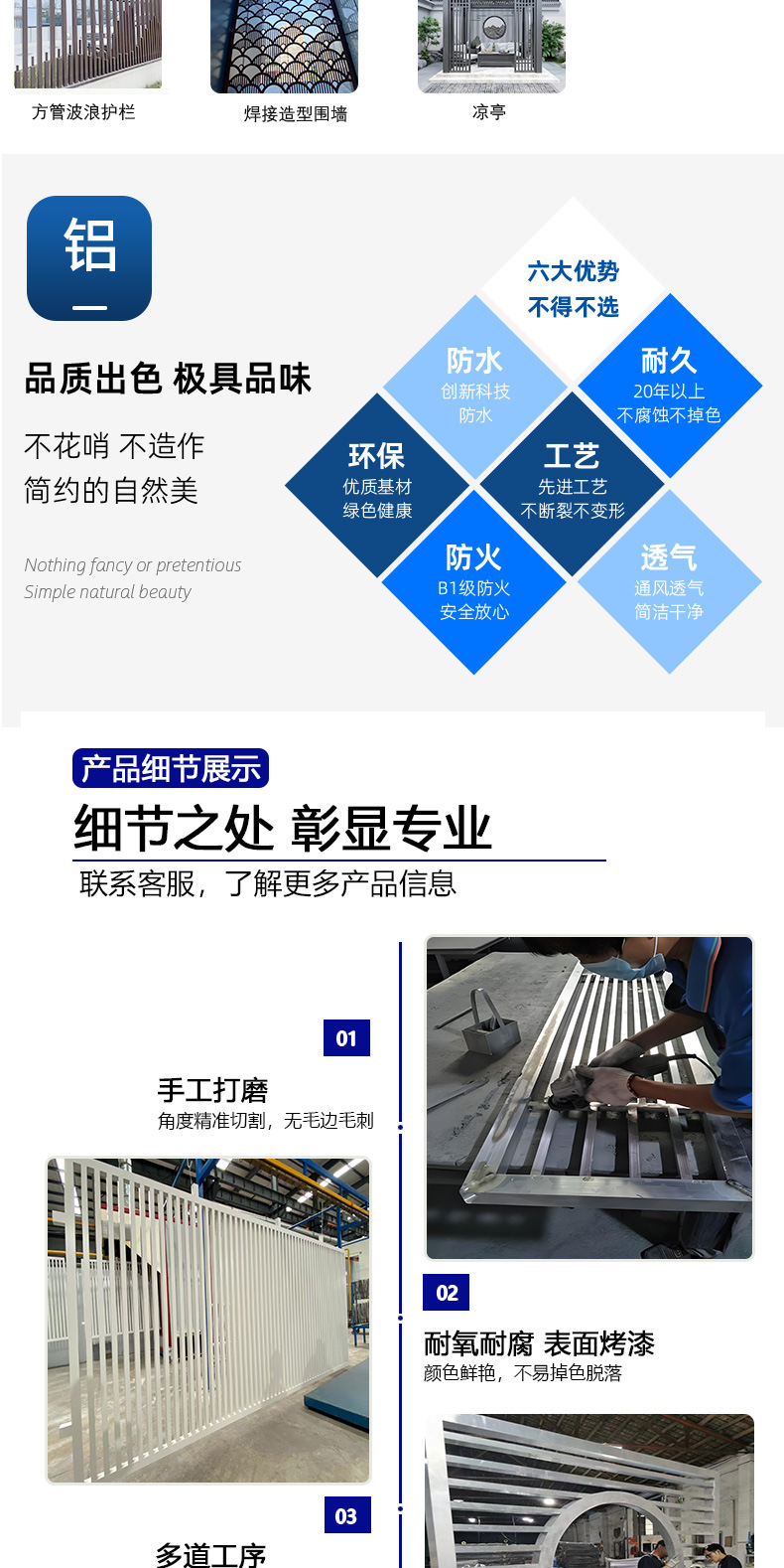 定制铝艺护栏 庭院围栏铝合金立柱新中式围墙栏杆别墅露台防护栏