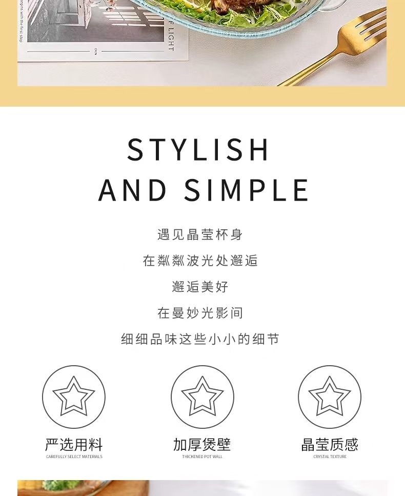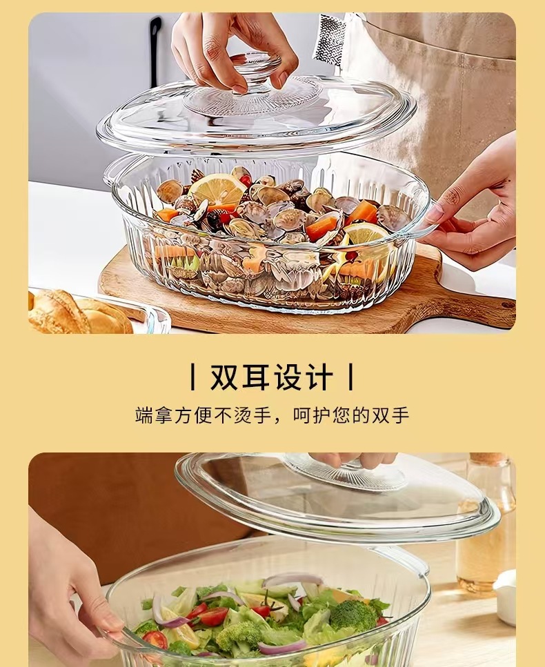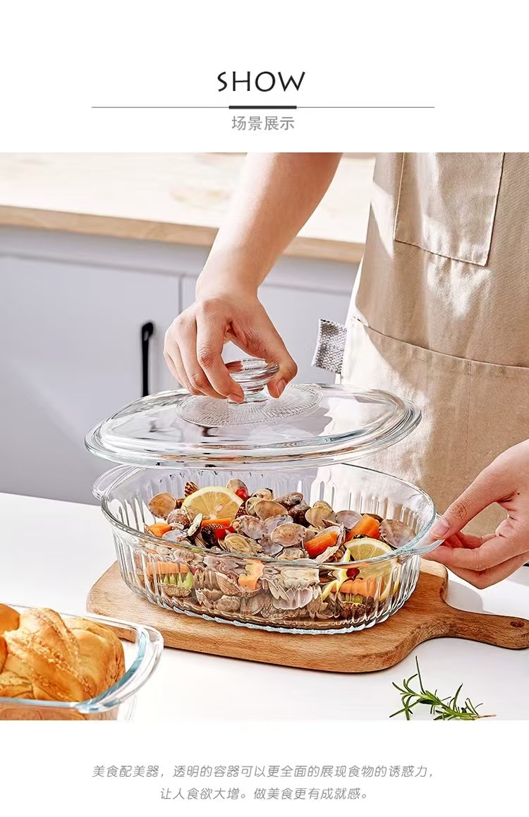 大型スープボウル、家庭用スープボウル、ガラスボウル、電子レンジ専用器具、高温耐性双耳ベーキングパン、魚皿、野菜皿
