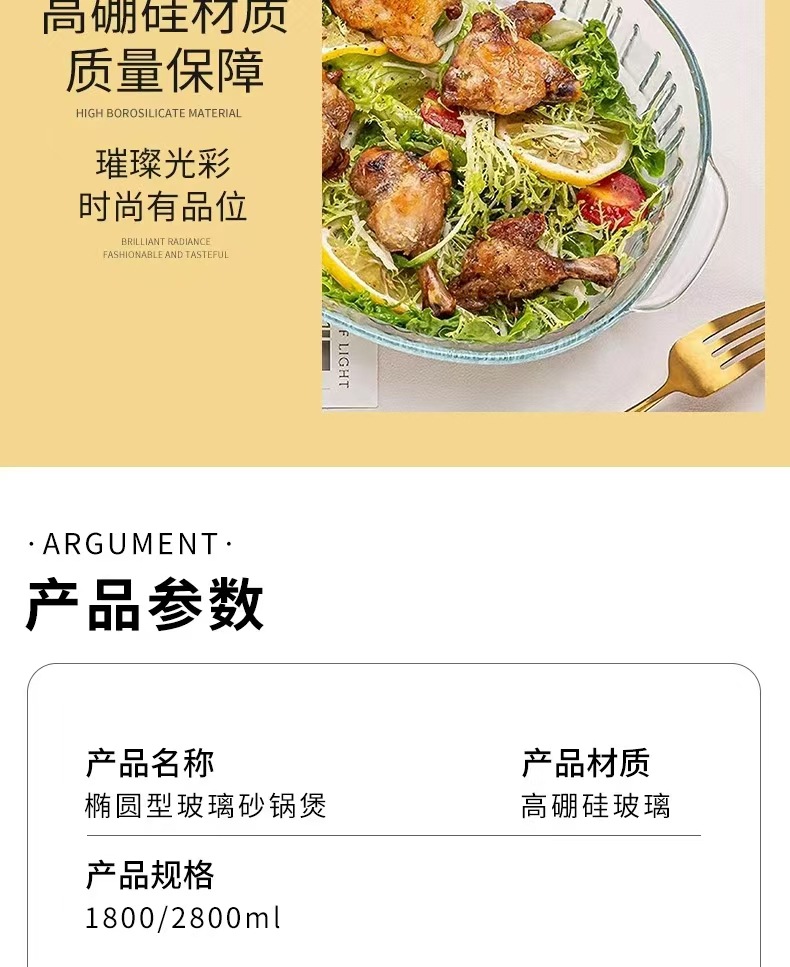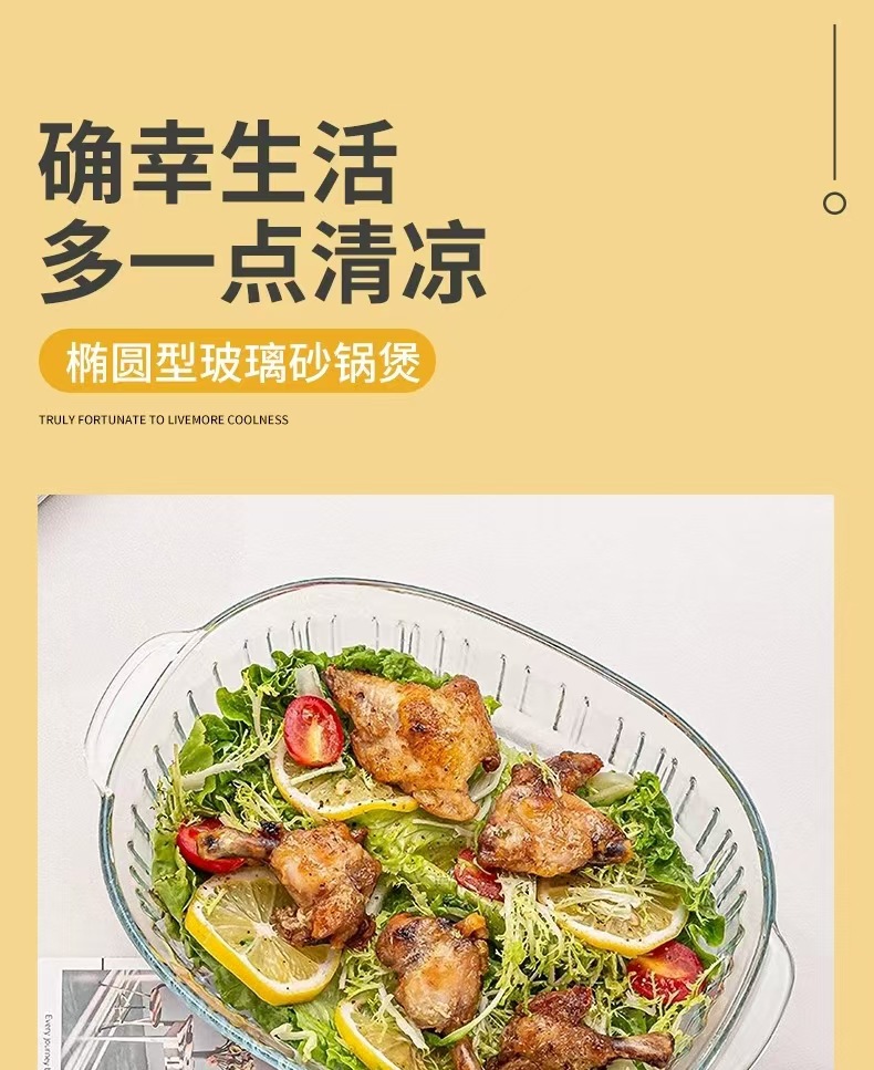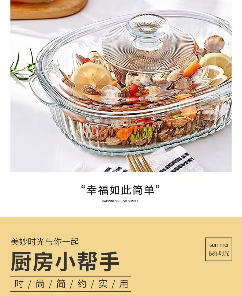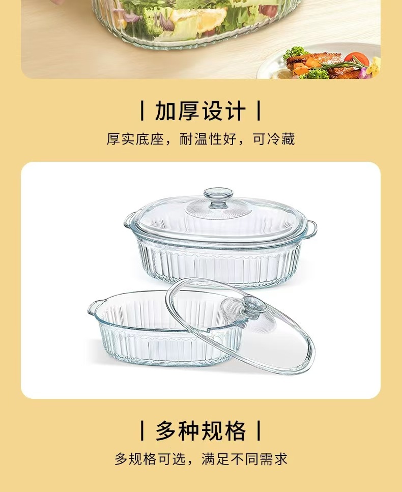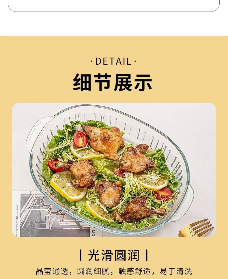 高ホウ素シリコン耐熱ガラス水晶鍋家庭用電子レンジオーブン両耳焼き皿長方形器皿魚皿