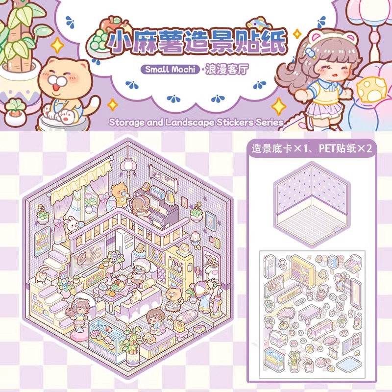 小麻芋造景シール3d立体シール無裁断DIY手作りミニチュアシーンシール装飾小模様