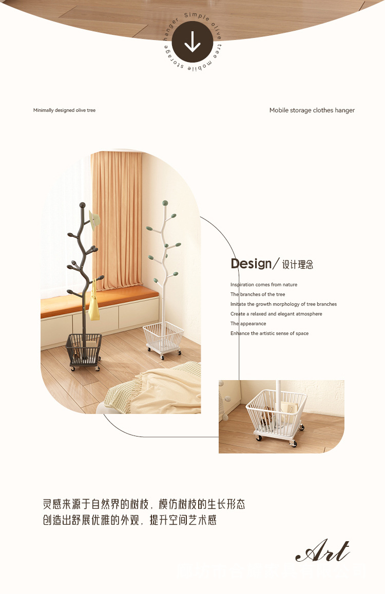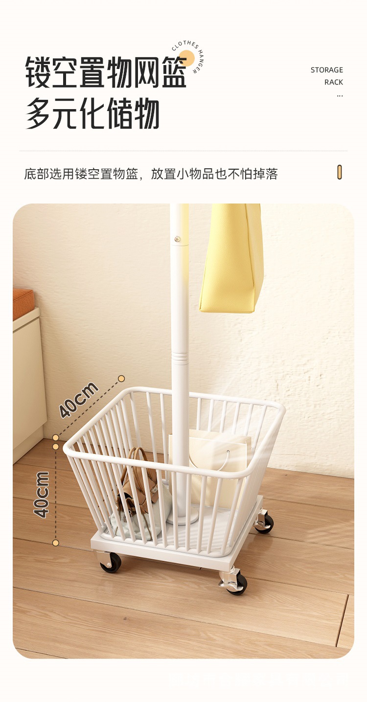 クリーム風床置きコートラック寝室床置きハンガー移動可能プーリーコーナーベッドサイド収納バスケット汚れたかご