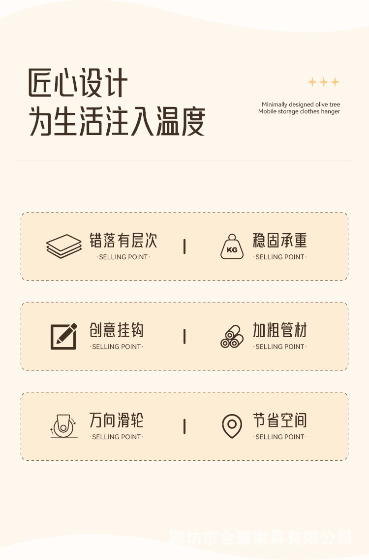 フードラック床置きクリーム風寝室移動可能帯輪掛け服置物ハンガー収納バスケット汚れたかご