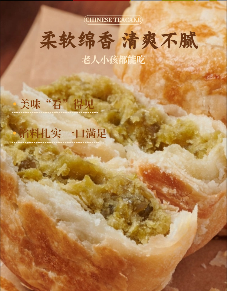 原材料と原材料 パイの皮:小麦粉、大豆油、白砂糖、卵、その他のエンドウ豆の詰め物:エンドウ豆、白砂糖、飲料水