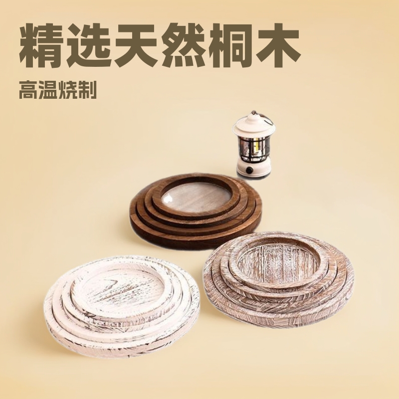 复古木质圆形装饰托盘农舍做旧烛台底座家用客厅香薰蜡烛实木盘